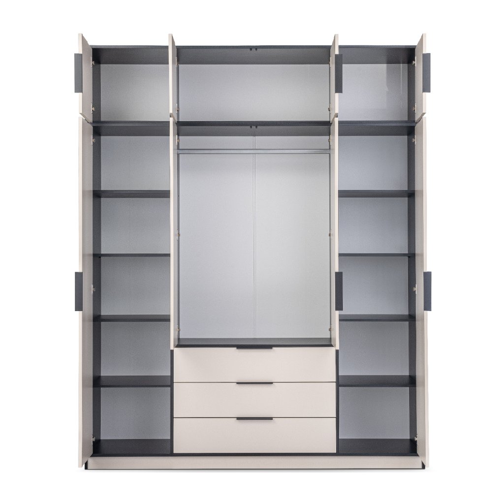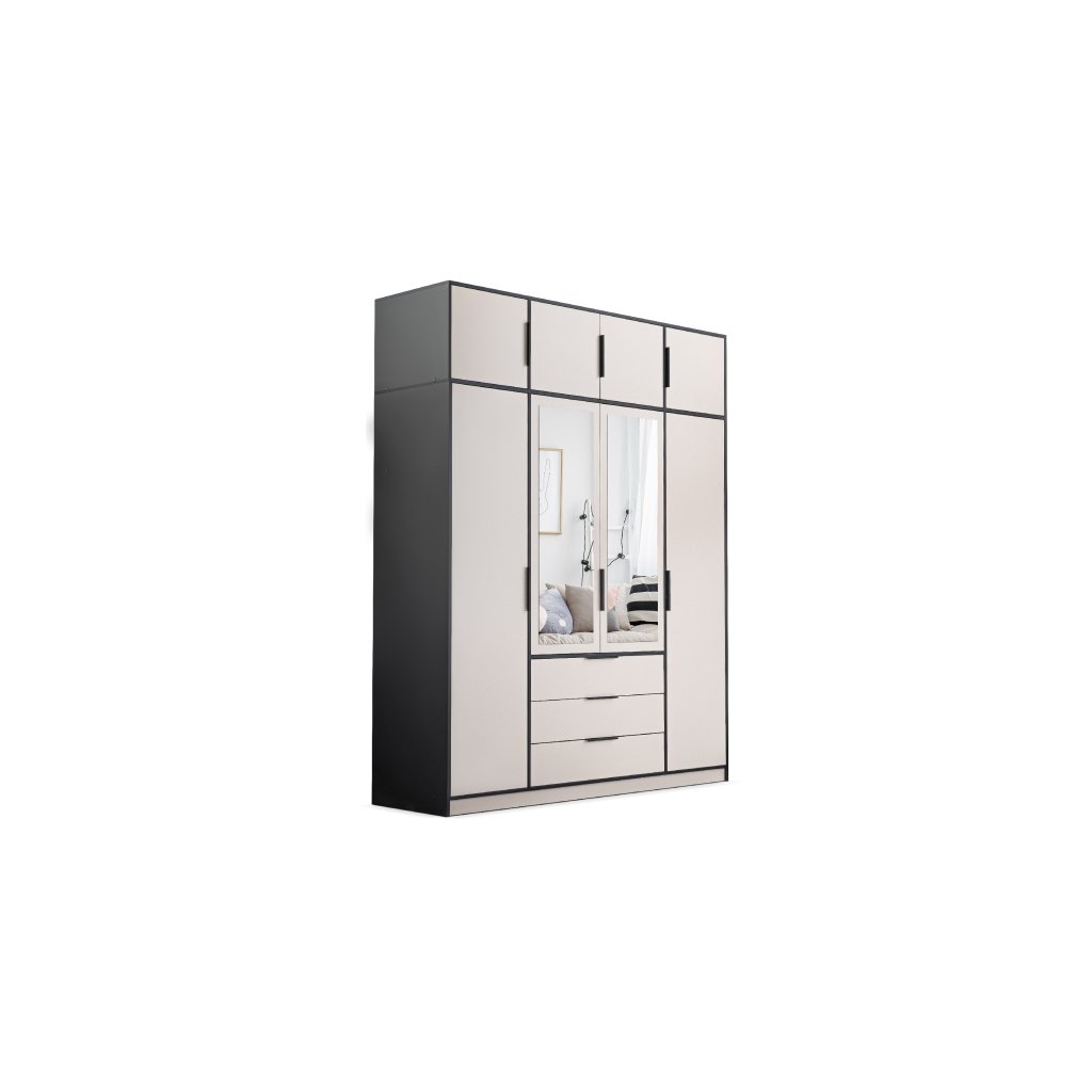 A LATI D4 gardróbhoz tartozó lenyűgöző bővítmény kiváló minőségű és tartós anyagból készült, amely garantálja a tartósságot és az Ön elégedettségét. A bővítmény rendkívüli tárolóhelyet, időtlen színdizájnt és modern szettakat kínál. A szép fekete fém fogantyúk összhatást kölcsönöznek. Tehát ne habozzon tovább, és adjon hálószobájának egy kis praktikumot a LATI D4 gardróbhoz tartozó bővítmény formájában. A bővítmény alkalmas a LATI D4 gardróbhoz .