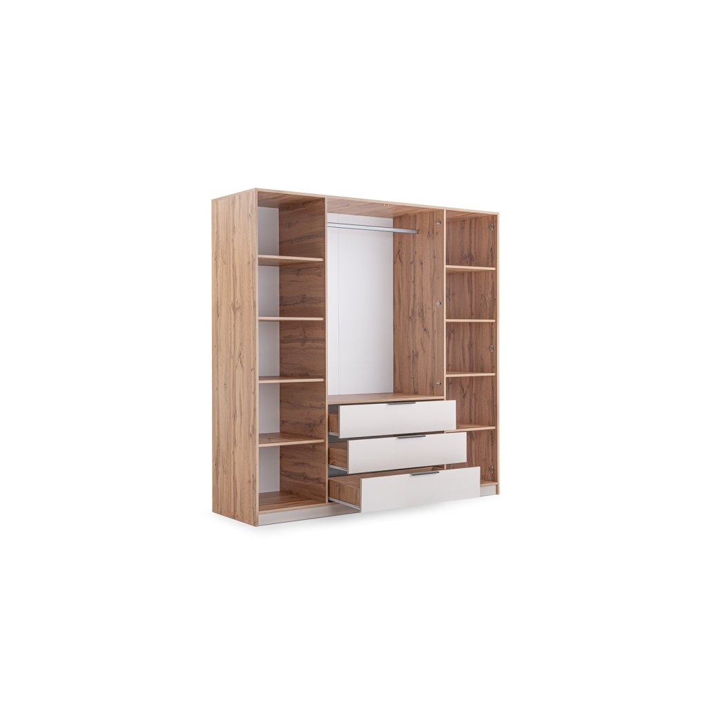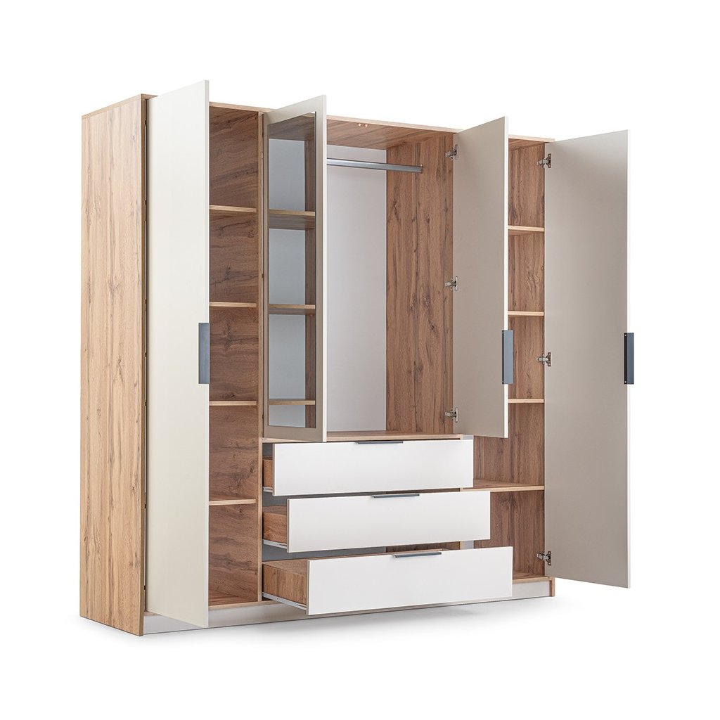 A tágas LATI D4 gardróbszekrény kiváló minőségű és tartós anyagból készült, amely hosszú élettartamot és az Ön elégedettségét garantálja. A gardróbszekrény kiváló minőségű tárolóhelyet, időtlen színdizájnt és vonzó szettakat kínál. A szép fekete fém fogantyúk összhatást kölcsönöznek a gardróbszekrénynek. Tehát ne habozzon tovább, és tegye tökéletessé hálószobáját a LATI D4 gardróbszekrény formájában. Ha érdekli, a LATI D4 gardróbszekrényhez bővítményt is rendelhet.