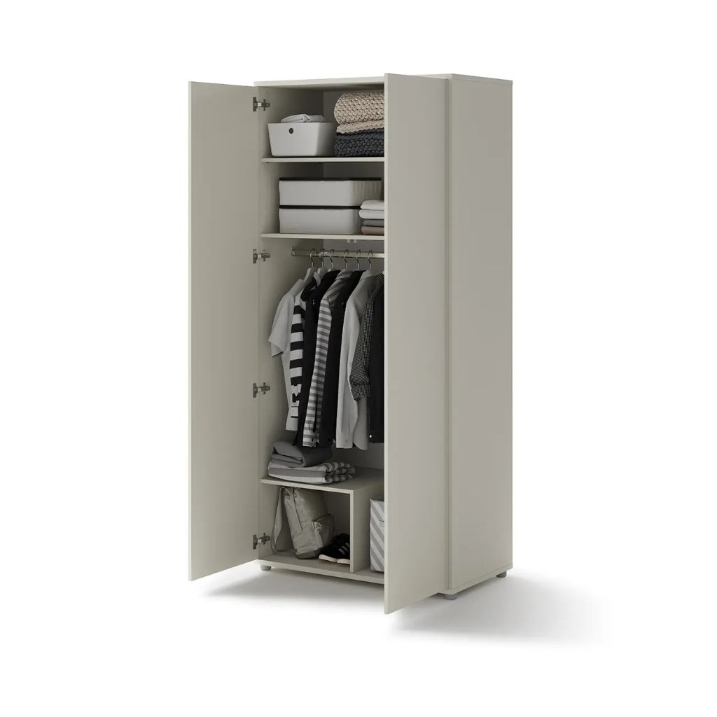 A modern, kétajtós Lenart BED CONCEPT BC-20 gardróbszekrény azoknak ajánlott, akik kiváló minőségű és időtálló bútorokat keresnek otthonukba. A nyomásra nyíló rendszernek köszönhetően könnyen nyitható. A gardróbszekrény vállfával és polcokkal rendelkezik, amelyek elegendő helyet biztosítanak a ruhák tárolására. Az alsó részben például kézitáskák tárolására van hely. Az ABS éleknek köszönhetően megakadályozzuk a sarkok kopását. Az időtlen gardróbszekrény nagyszerű megoldás kis terekbe, más Lenart BED CONCEPT bútorokkal együtt.