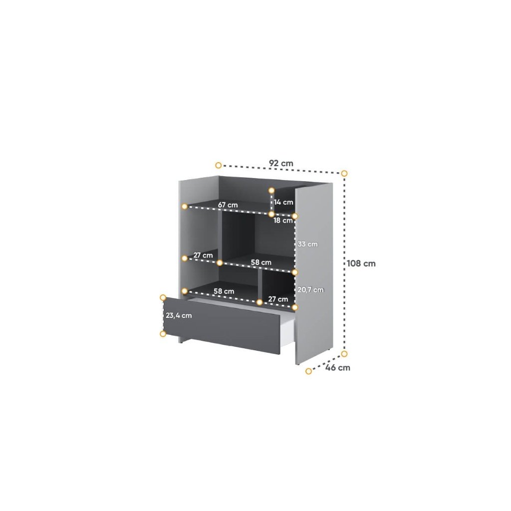 A praktikus alacsony polcos Lenart BED CONCEPT BC-25 bármilyen belső térbe illik, de leginkább a 90 x 200 cm méretű Lenart BED CONCEPT BC-06 összecsukható ágyhoz passzol. Rajtad múlik, hogy melyik színkombinációt választod, több színben is elérhetőek. A könyvespolc három polccal rendelkezik, amelyek elegendő helyet biztosítanak könyvek, játékok, emléktárgyak vagy képkeretek tárolására. A push to open rendszernek köszönhetően a fiók könnyen nyitható. A BED CONCEPT BC-25 polc remek megoldás kis terekbe, más Lenart BED CONCEPT bútorokkal együtt.