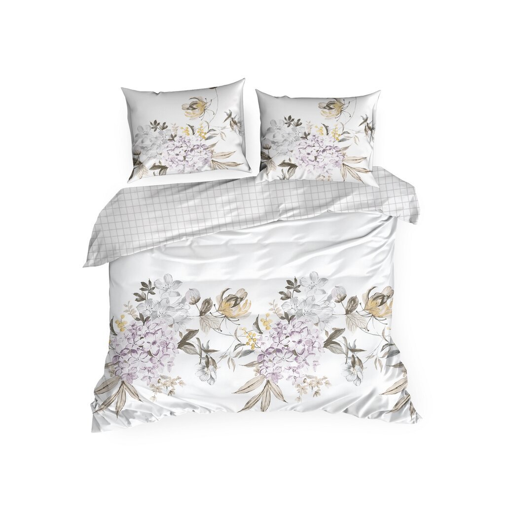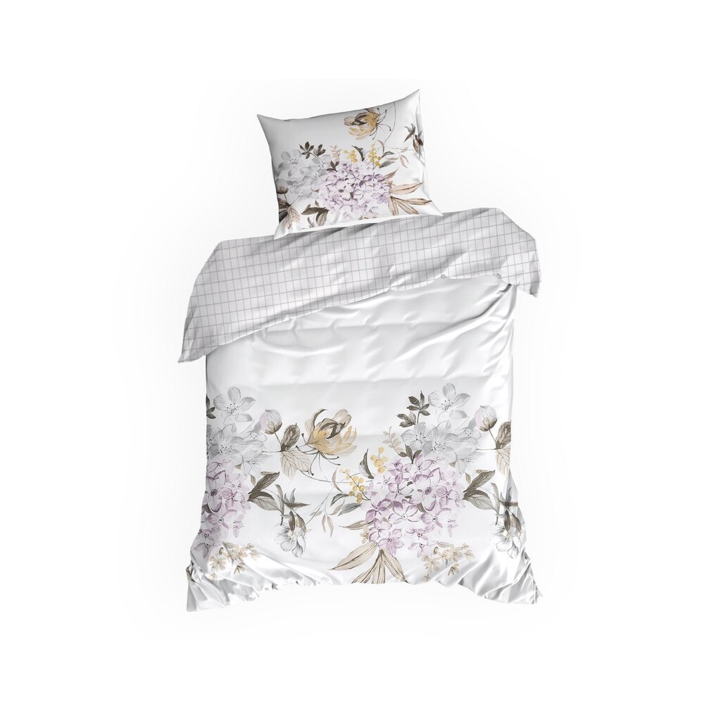 Pamut szatén ágygarnitúra nyomattal Szélesség: 220 cm, Hossz: 200 cm, Szín: fehér, Súly: 115 GSM, Összetétel: szatén, 100% pamut. A csomag tartalma 1 db 220 cm, 2 x 70 x 80 cm.