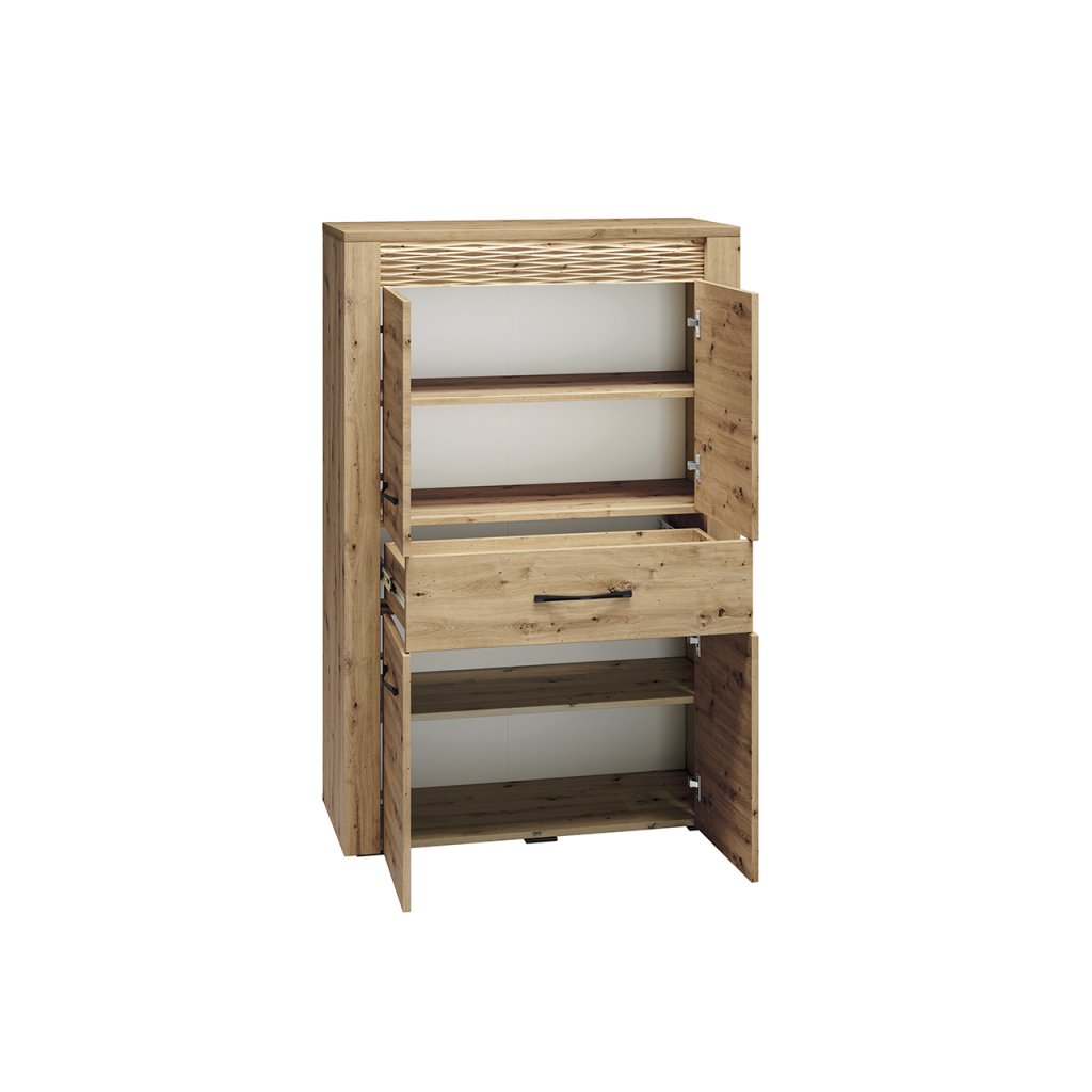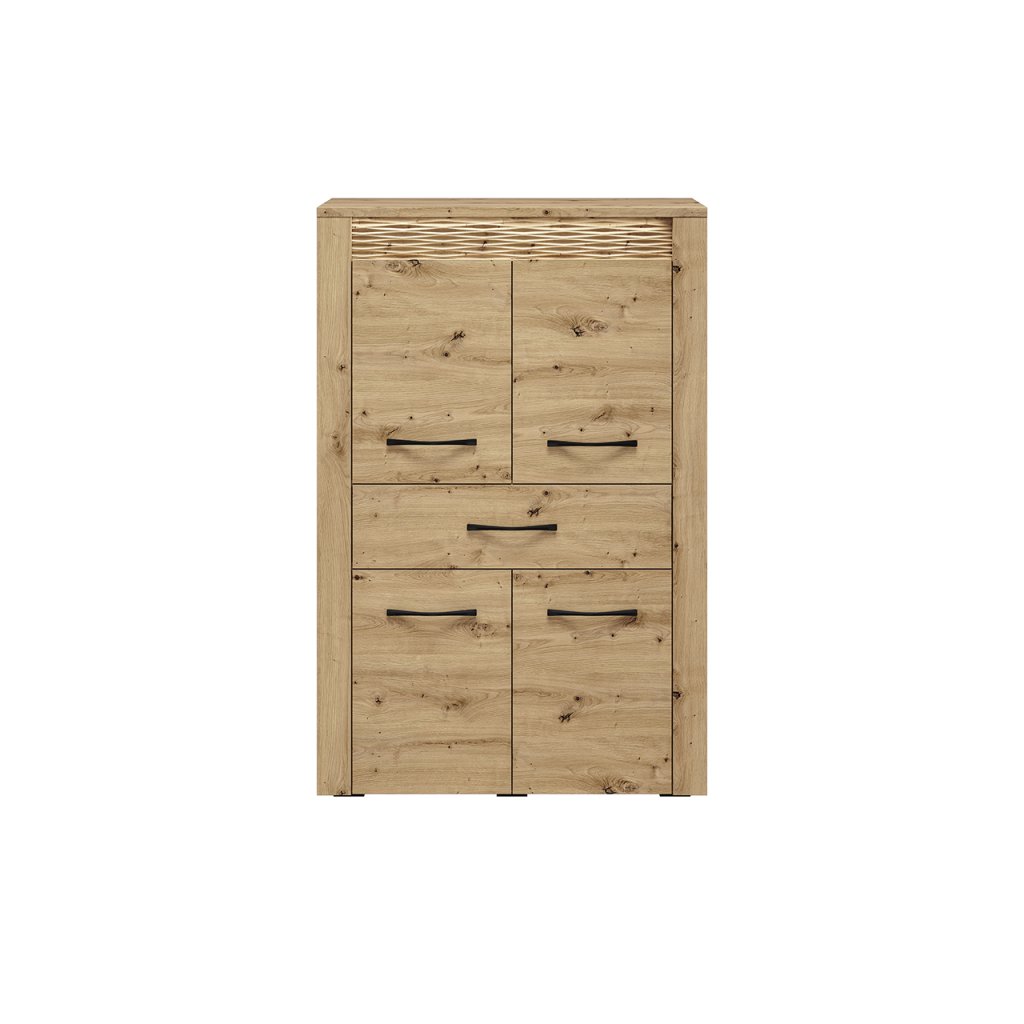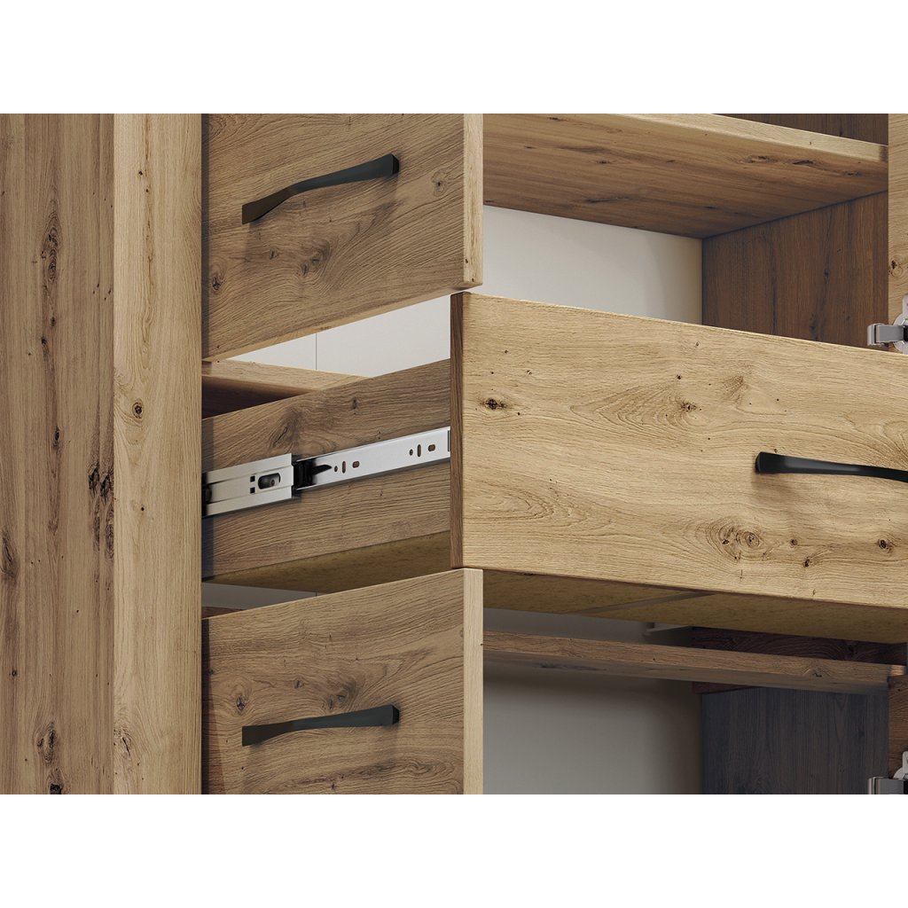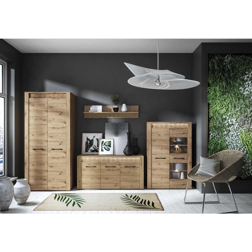 A LEWIS kollekció jelentős és impozáns stílusa modern, de különösen klasszikus enteriőrbe illik. A tölgy kézműves dekor natúr fa erezete fekete fogantyúkkal kombinálva élénkíti a helyiséget, a megvilágított dekoratív horony pedig már első pillantásra megragadja a tekintetet. A LEWIS 06 szekrény 4 ajtós és 1 fiókos, az ABS éleket értékelni fogja a mindennapi használatra, a horonyvilágítást az ár tartalmazza. Ne habozzon, és bútorozza nappaliját vagy étkezőjét a LEWIS kollekcióval .