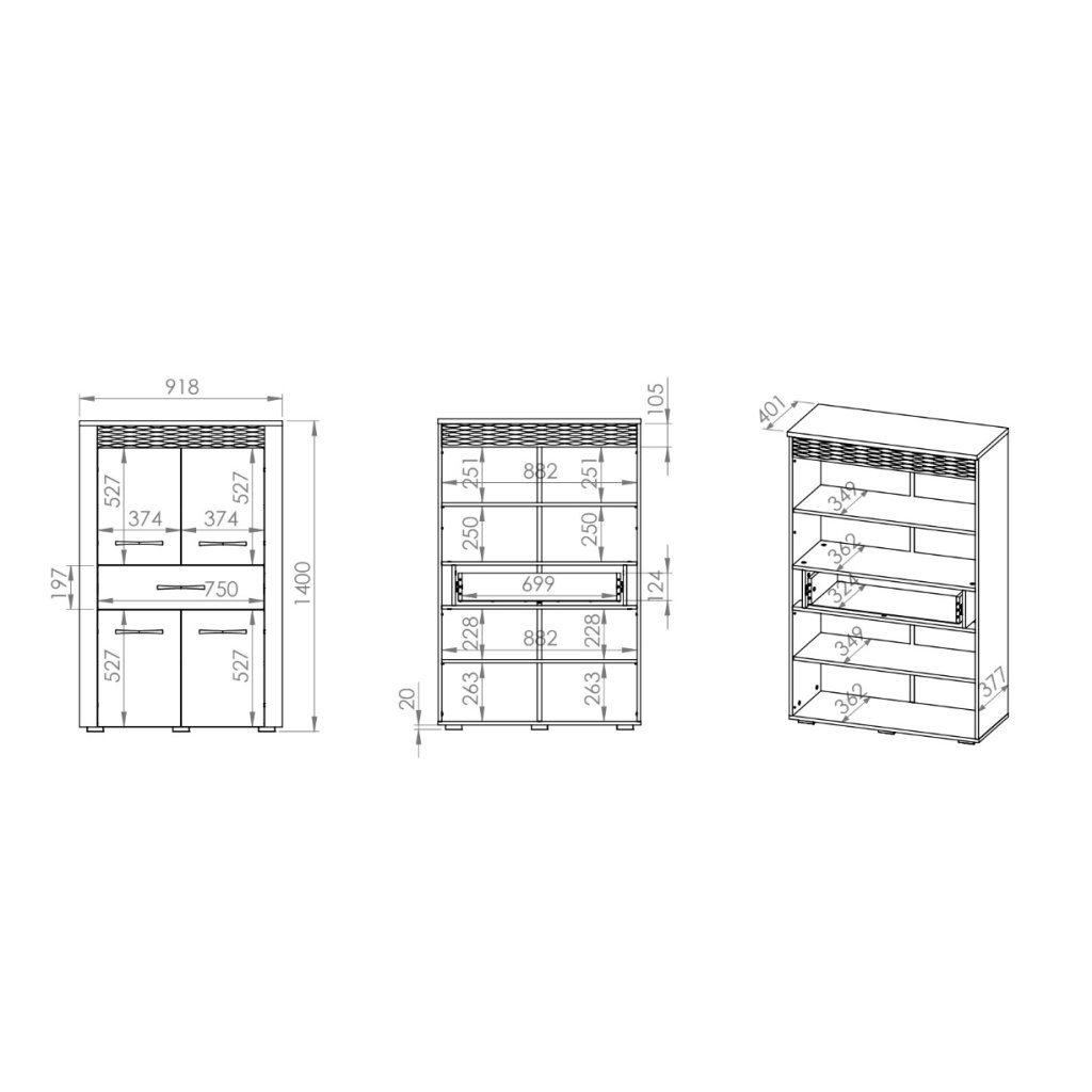 A szekrény kiváló minőségű MDF lapból és laminált lapból készült, amely ellenáll a sérüléseknek, a nedvességnek és a magas hőmérsékletnek. Az ABS él nem hámlik és nem deformálódik.