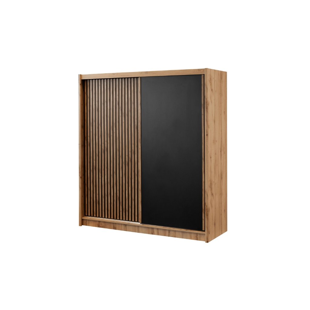 A LONDON 203 gardrób tágas, hálószoba vagy előszoba berendezésére alkalmas. A LONDON 203 gardrób gyönyörű modern kidolgozásával egyedülálló. Egyedi színű, Wotan tölgyfa és fekete kombinációjú gardrób , tükör nélkül. Merítsen ihletet kínálatunkból, és válasszon egyedi gardróbot.