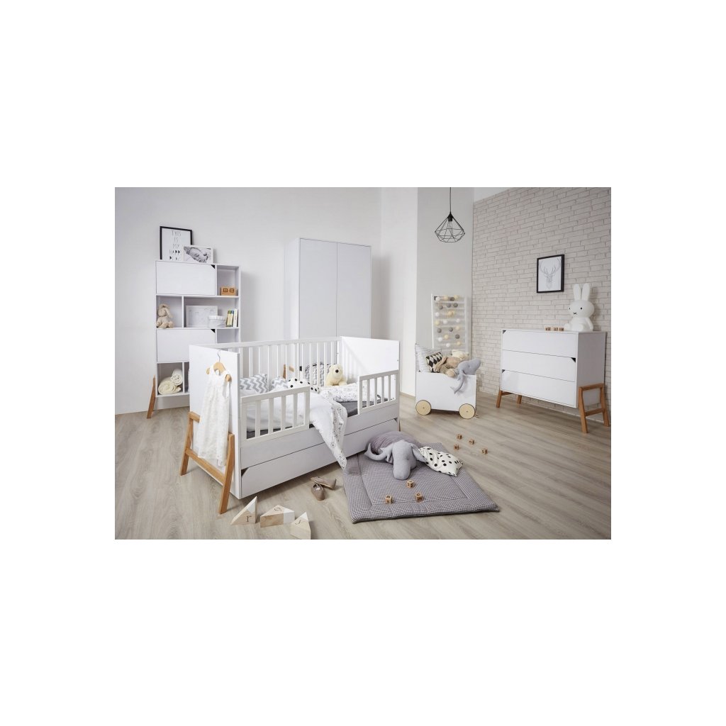 A luxus LOTTA gyermekbútor-kollekciót kifejezetten az időtlen és modern enteriőrök számára tervezték, amelyek kivételes bútorokat igényelnek. Ez az elegáns gyermekbútor-garnitúra minden olyan kedvelőt elvarázsol, aki az egyszerűség és az egyedi stílus szerelmese. A kollekció része a LOTTA gyermekgardrób is, amelyet világos színek jellemeznek, amelyek kiemelik eredeti formáját. A gyermekgardrób tölgyfa lábakon áll, amelyek könnyedséget lehelnek bele. Ez az eredeti gardrób egy tágas fiókkal rendelkezik. A gyermekgardrób falra is szerelhető, ellenáll a sérüléseknek és a nedvességnek, és könnyen tisztítható. A gyermekgardrób tágas, polcokkal és ruhaakasztó rúddal rendelkezik.
