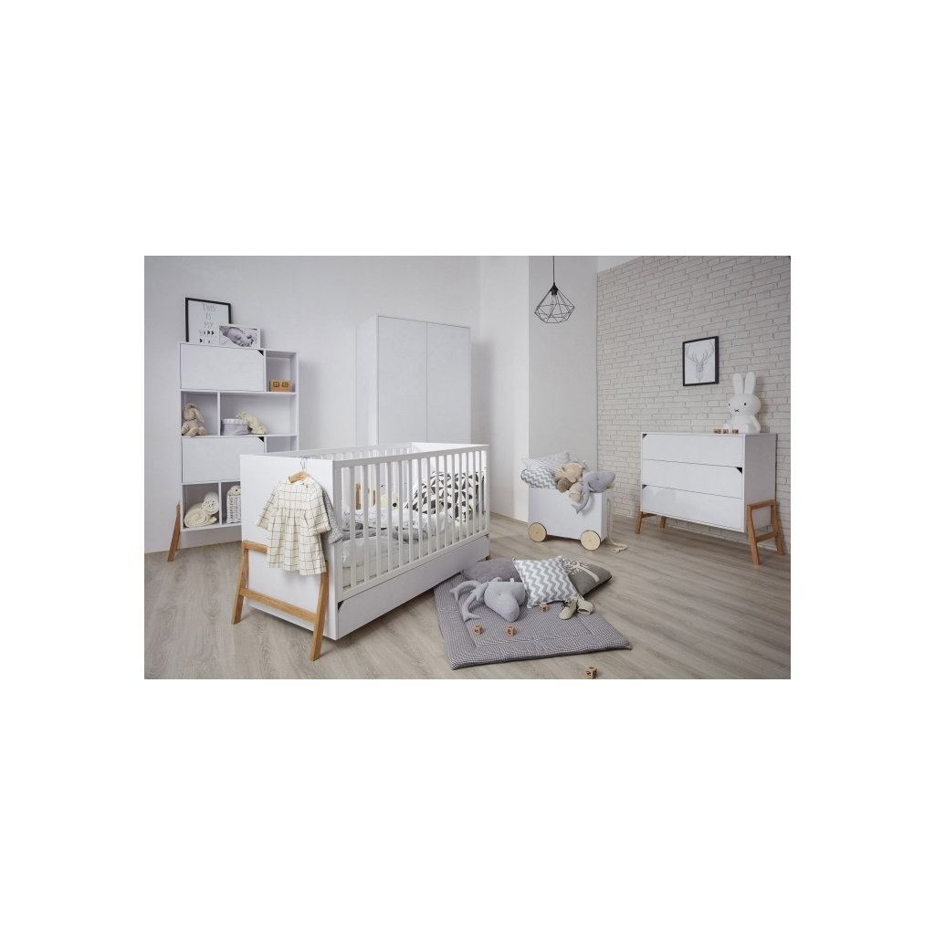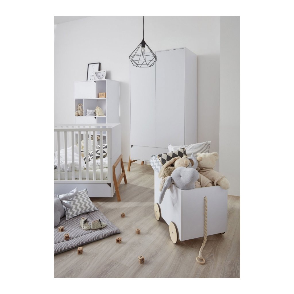 A luxus LOTTA gyermekbútor-kollekciót kifejezetten az időtlen és modern enteriőrök számára tervezték, amelyek kivételes bútorokat igényelnek. Ez az elegáns gyermekbútor-szett minden olyan kedvelőt elvarázsol, aki az egyszerűség és az egyedi stílus szerelmese. A kollekció része a LOTTA gyermekgardrób is, amelyet világos színek jellemeznek, amelyek kiemelik eredeti formáját. A gyermekgardrób tölgyfa lábakon áll, amelyek könnyedséget lehelnek bele. Ez az eredeti gardrób egy tágas fiókkal rendelkezik. A gyermekgardrób tágas, polcokkal és ruhaakasztó rúddal rendelkezik.