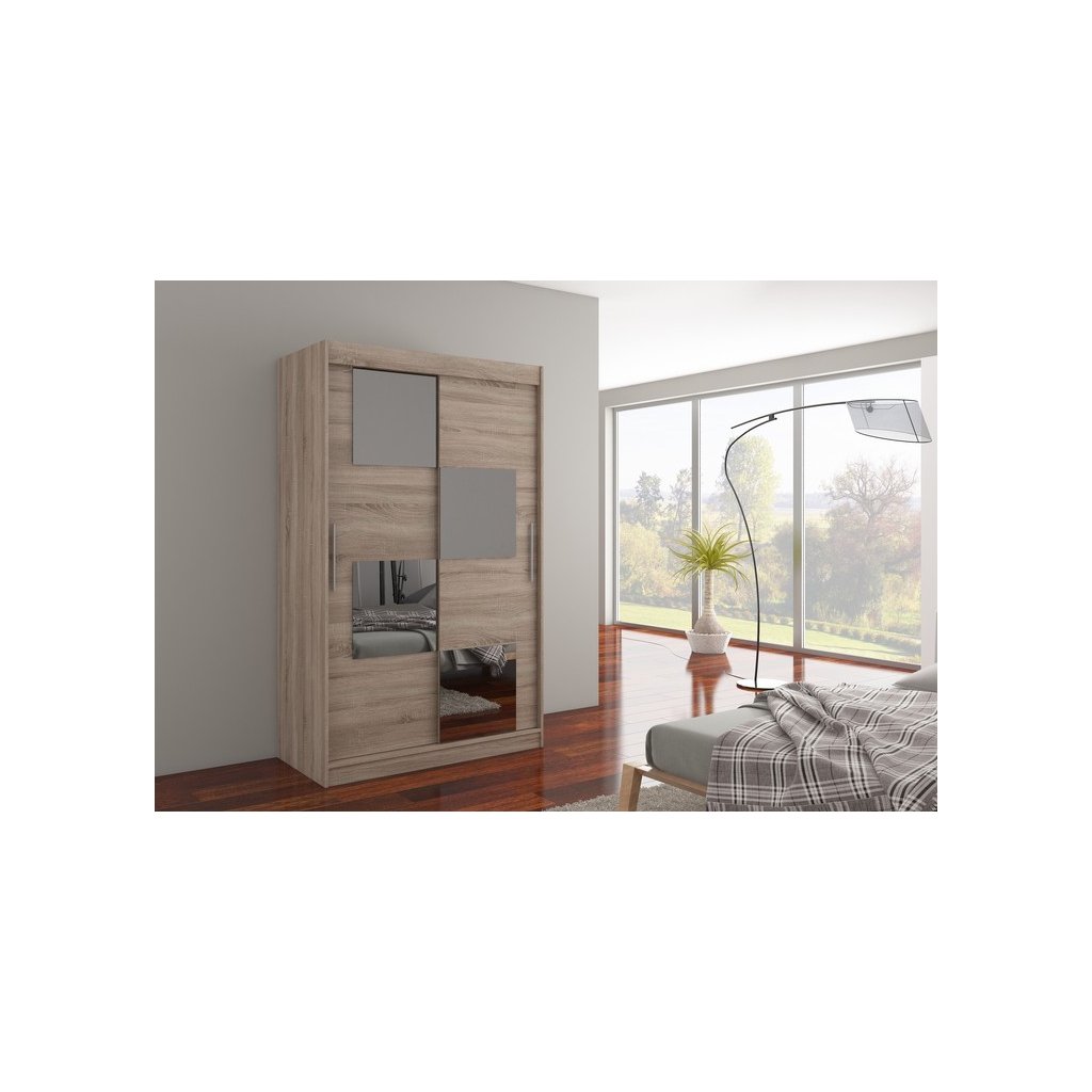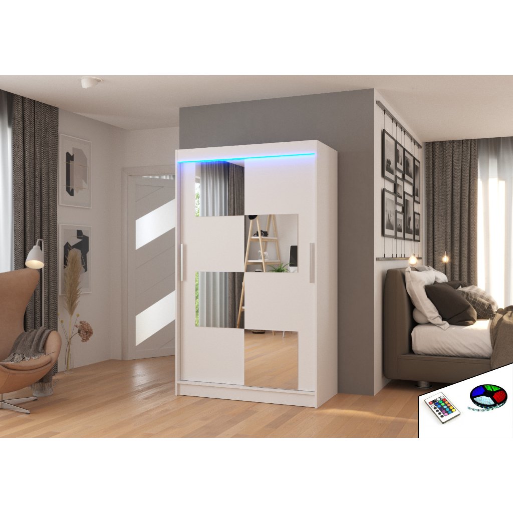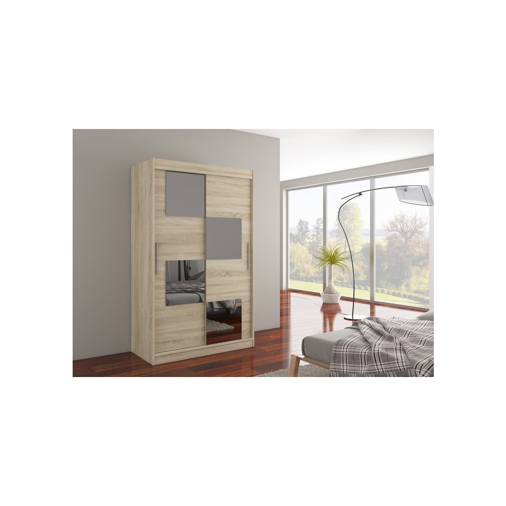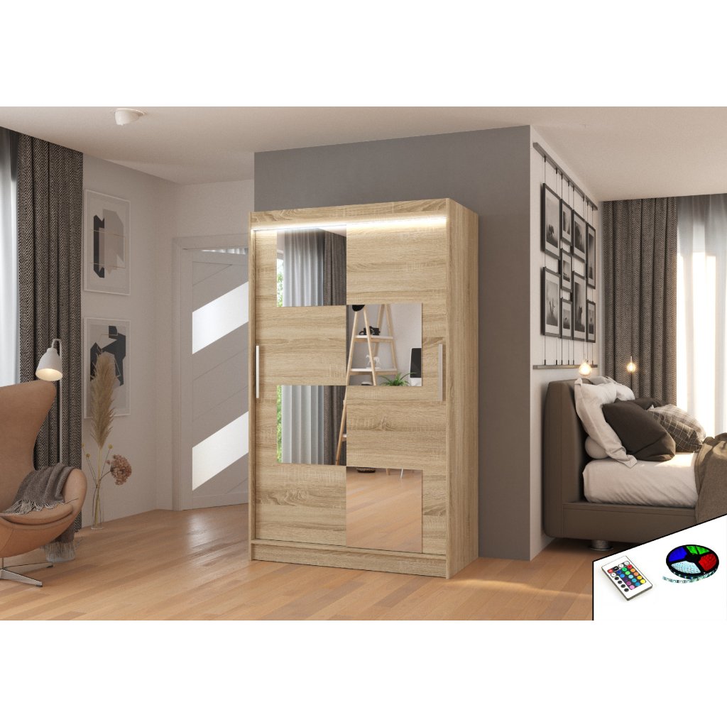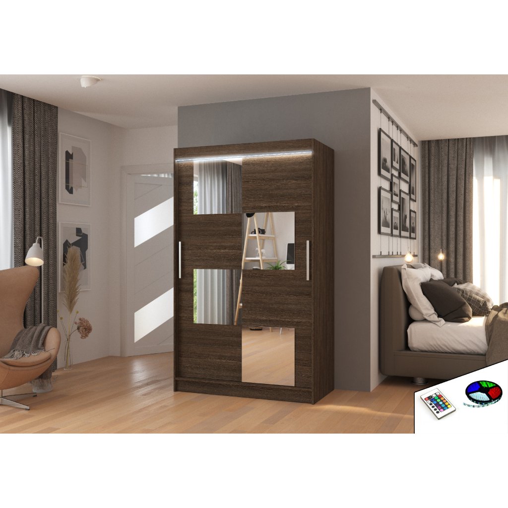 A modern LUGANO gardrób korlátlan lehetőségeket kínál a ruhák rendszerezésére. A LUGANO gardrób négy alapszínben készül: sonoma, fehér, csokoládé és szarvasgomba. A gardrób kétajtós - tolós. A gardrób polcokkal és ruhaakasztó rúddal rendelkezik. Az alumínium sínek megkönnyítik a mindennapi használatot . A gardrób négy kisebb tükörrel rendelkezik, ami egyediséget és bájt kölcsönöz neki . Lehetőség van 15 színű LED világítás rendelésére távirányítóval.