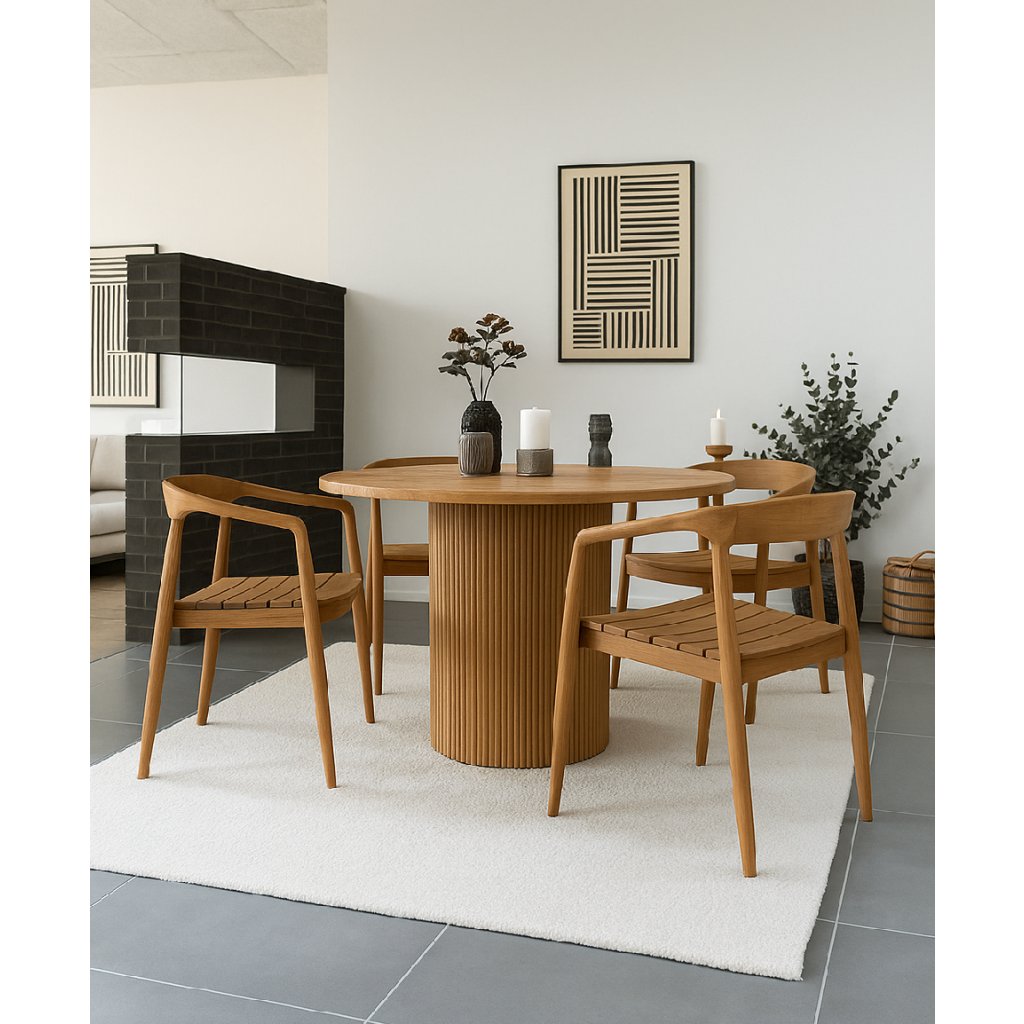 Teremtsen egyedi teret otthoni társasági életéhez a luxus BOOTERO étkezőgarnitúrával . A BOAVISTA étkezőasztal hengeres talppal és kerek asztallappal, natúr fa dekorációval, ideális választás azok számára, akik a stílust, a funkcionalitást és a megfizethetőséget keresik egyszerre. Letisztult szettai, modern hengeres talpa és natúr fa dekorációjú felülete tökéletes kiegészítője a minimalista és skandináv enteriőröknek. A prémium termékcsalád stílusos OTERO széke, amely kiváló minőségű teakfából készült, nagyszerű választás mindazok számára, akik a funkcionalitást a természetes dizájnnal szeretnék ötvözni. A BOOTERO étkezőgarnitúra ideális skandináv, minimalista és természetes életstílusokhoz . A fa melegségének és a modern szettaknak a kombinációja harmonikus hangulatot teremt, amely minden otthont otthonossá tesz.