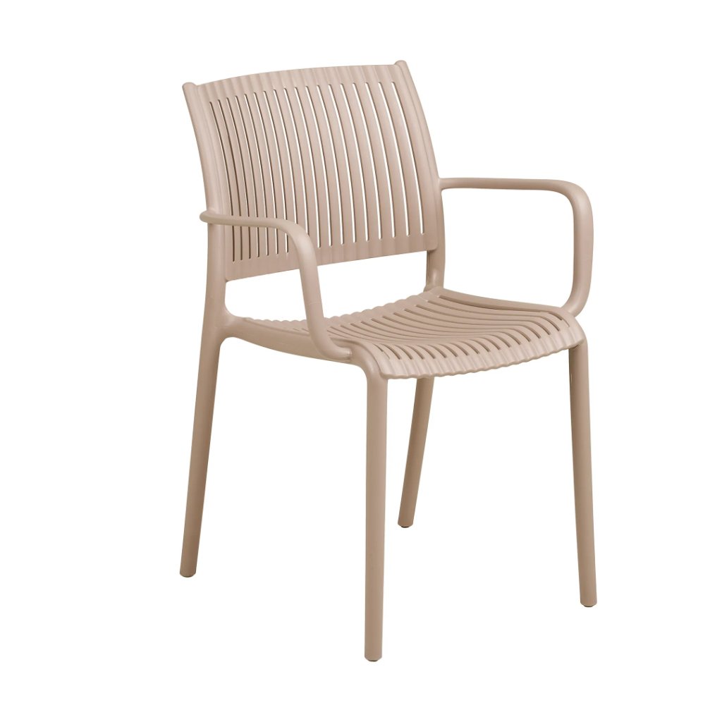 Az elegáns bézs színű MANZANO kerti szék ideális választás modern teraszokra, erkélyekre és kertekbe. Kiváló minőségű polipropilénből készült, amely könnyű, erős és ellenáll az időjárás viszontagságainak, így alkalmas mindennapi kültéri használatra. Ergonomikus formájának és praktikus karfáinak köszönhetően kényelmes ülést biztosít, ugyanakkor stílusos és időtlen megjelenést kölcsönöz a térnek.