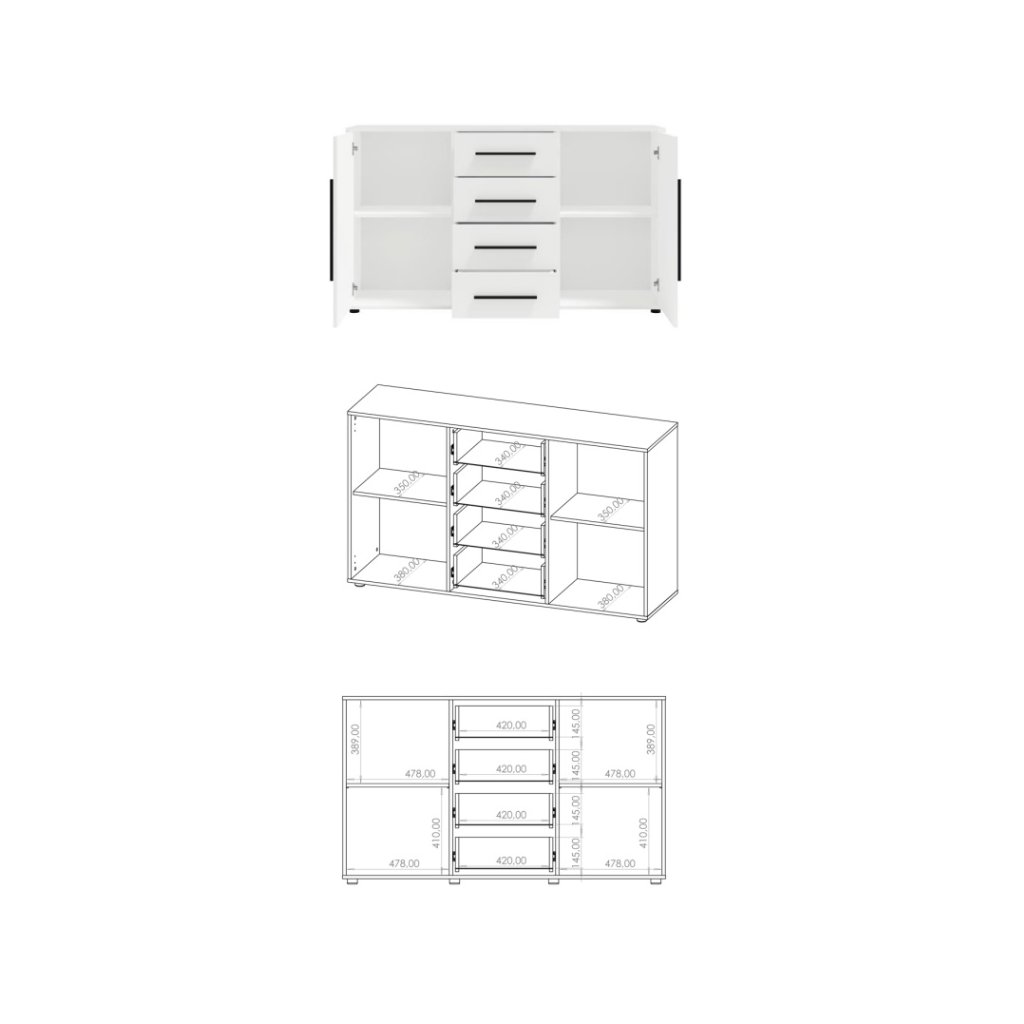 - Sz x Ma x Mé komód K2D4SZ: 150 x 87,2 x 40 cm