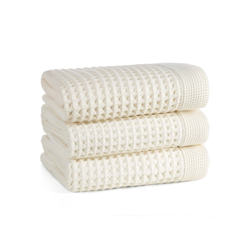 Pamut fürdőlepedő jellegzetes gofri mintázattal. Szélesség: 70 cm, Hosszúság: 140 cm, Szín: Krém, Súly: 400 GSM, Összetétel: Anyag: 100% pamut