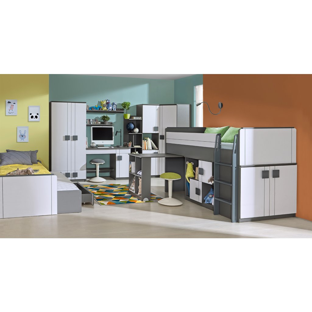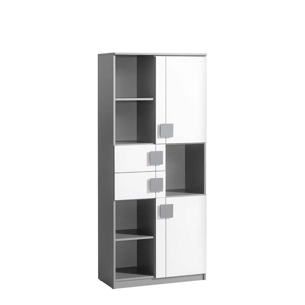A Gumi G2 gardróbszekrény egy stílusos és praktikus bútordarab modern dizájnnal. Az antracitszürke és a hamvasfehér színek kombinációja időtlen megjelenést kölcsönöz neki, amely bármilyen enteriőrbe illik. Az egész gardróbszekrény zárt, csak két polc nyitott, és további két polc rejtőzik az ajtók mögött. Ezekre dekorációkat vagy könyveket helyezhetünk. Az ajtók kinyitása után a gardróbszekrény hatalmas tárolóhelyet tár fel, amely ideális a holmijaink rendszerezéséhez. A nyitott és zárt részek kombinációja ötvözi az esztétikát a funkcionalitással. A Gumi G2 gardróbszekrény kiváló választás mindazok számára, akik praktikus és elegáns bútorokat keresnek.
