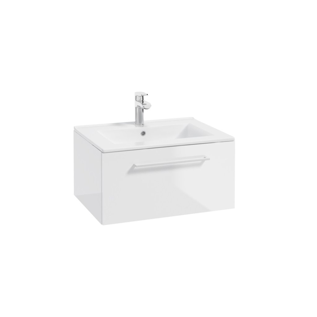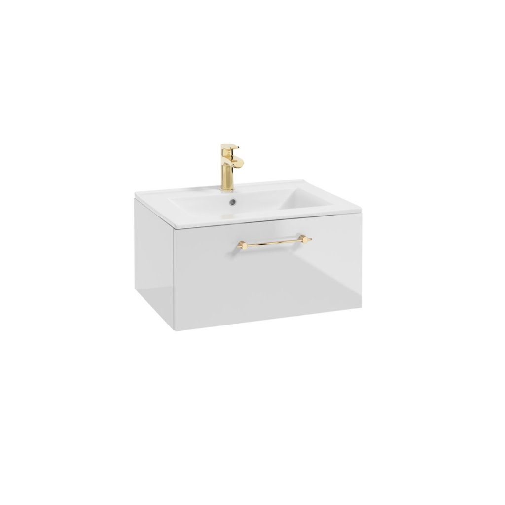 A fényes fehér FERATA D60/45 1S mosdószekrénnyel hatékonyan berendezhet bármilyen teret. A tágas fióknak köszönhetően praktikus helyet biztosít a nélkülözhetetlen fürdőszobai kiegészítők tárolására. A mosdószekrény különféle stílusos fogantyúkkal kombinálható , amelyek különböző színekben és dizájnokban kaphatók. A fogantyúk nem tartozékok. A szekrény elegáns Sky lábakkal is kiegészíthető , amelyek külön kiegészítőként kaphatók.