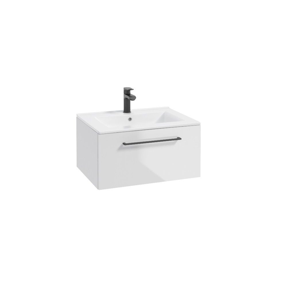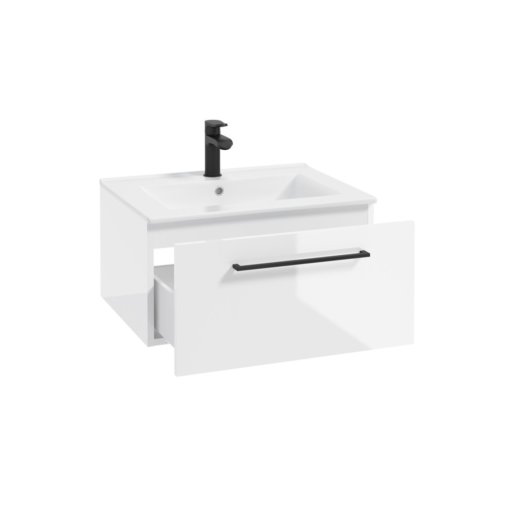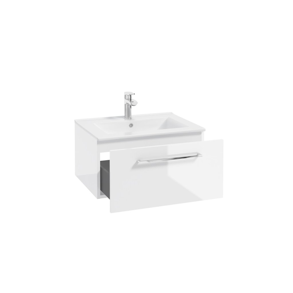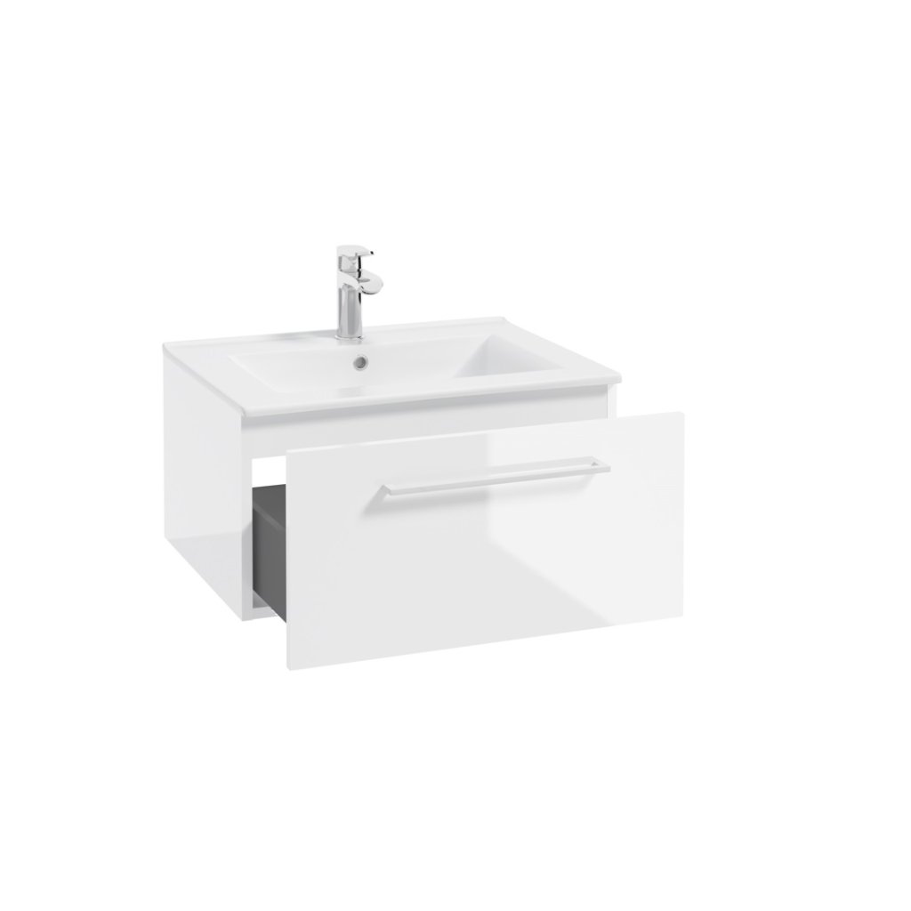 A fényes fehér FERATA D80/45 1S mosdószekrénnyel hatékonyan berendezhet bármilyen teret. A tágas fióknak köszönhetően praktikus helyet biztosít a nélkülözhetetlen fürdőszobai kiegészítők tárolására. A mosdószekrény különféle stílusos fogantyúkkal kombinálható , amelyek különböző színekben és dizájnokban kaphatók. A fogantyúk nem tartozékok. A szekrény elegáns Sky lábakkal is kiegészíthető , amelyek külön kiegészítőként kaphatók.