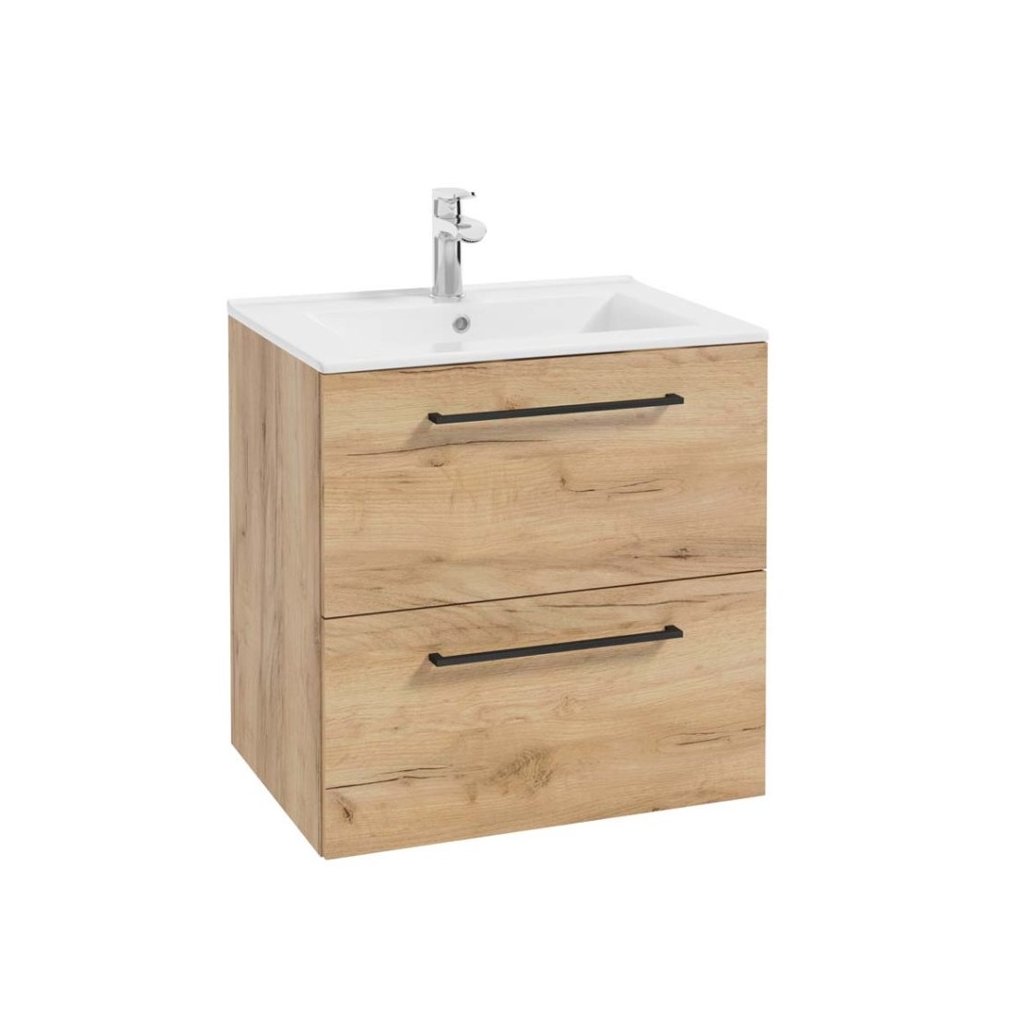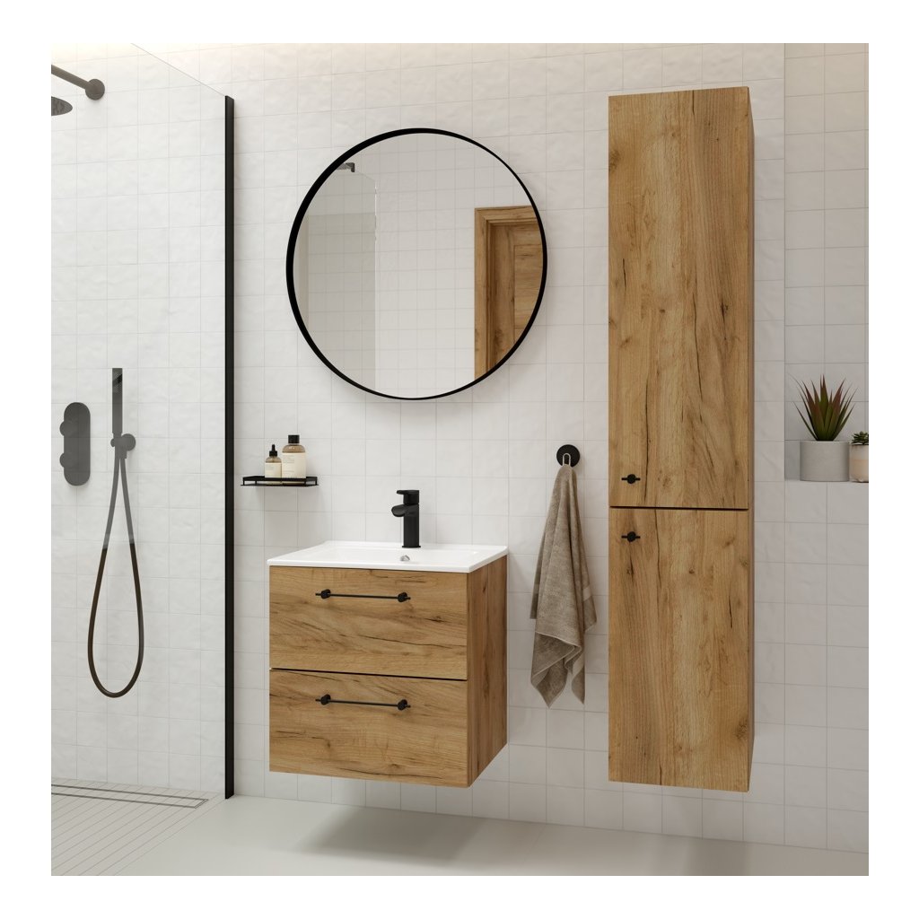A tölgyfa színű FERATA D80/45 2S mosdószekrény hatékonyan berendezhet bármilyen teret. Két tágas fiókjával praktikus helyet biztosít a nélkülözhetetlen fürdőszobai kiegészítők tárolására. A mosdószekrény különféle stílusos fogantyúkkal kombinálható , amelyek különböző színekben és dizájnokban kaphatók. A fogantyúk nem tartozékok. A szekrény elegáns Sky lábakkal is kiegészíthető , amelyek külön kiegészítőként kaphatók.