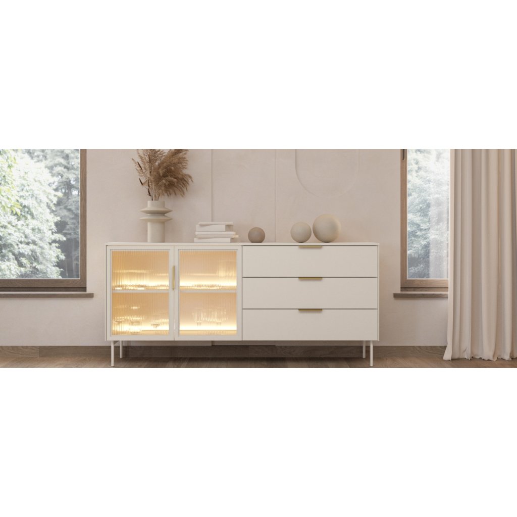 A NAIRE nappali fali LED világítással | kasmír stílusos kiegészítője lehet bármely modern enteriőrnek . A sötét színű dizájn, az elegáns arany fogantyúkkal és magas lábakkal kombinálva , könnyednek és szellősnek tűnik . A nappali fala beépített LED világítással is rendelkezik, kellemes meleg fehér színben, ami kiemeli a modern dizájnt . A praktikus fiókok és polcok rengeteg tárolóhelyet biztosítanak, míg a modern , nyomásra nyíló nyitórendszer kényelmes és problémamentes használatot garantál klasszikus fogantyúk nélkül.
