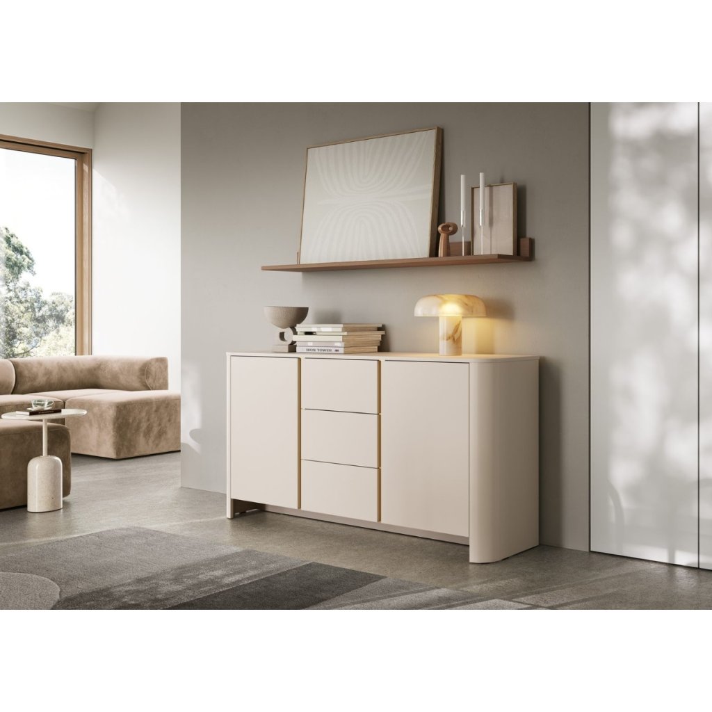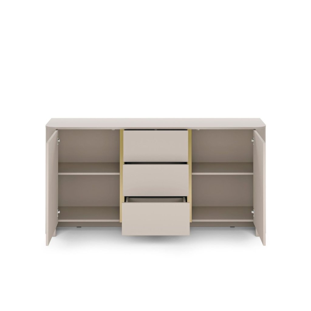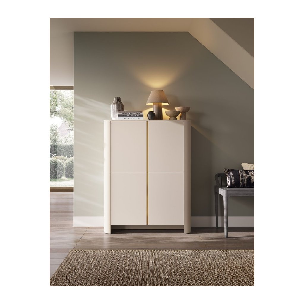 Az ABRIN szett modern bútor Nappaliba tervezve. Lehetővé teszi a tér praktikus és esztétikailag kiegyensúlyozott elrendezését az Ön igényei szerint. Kasmír színű dizájn lekerekített szettakkal a belső térbe hoz Finom elegancia és időtlen minimalista stílus . A nappali fala „ nyomásra nyitható ” nyitórendszerrel rendelkezik , amely tovább hangsúlyozza modern jellegét és kényelmes használatot biztosít.