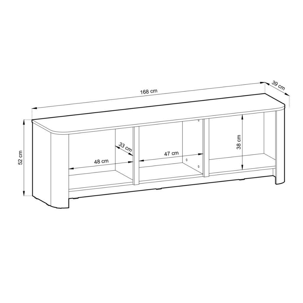 - RTV168 TV-állvány szélessége x magassága x mélysége: 168 x 52 x 39 cm