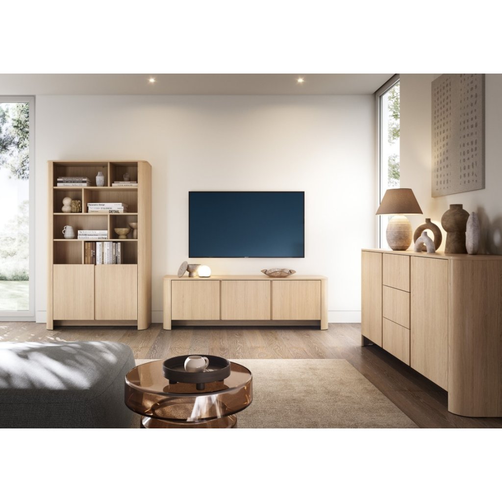 Az ABRIN szett modern bútor Nappaliba tervezve. Lehetővé teszi a tér praktikus és esztétikailag kiegyensúlyozott elrendezését az Ön igényei szerint. Színes kivitelben: tölgy vincenza együtt. lekerekített szettakkal a belső térbe hoz Finom elegancia és időtlen minimalista stílus . A nappali fala „ nyomásra nyitható ” nyitórendszerrel rendelkezik , amely tovább hangsúlyozza modern jellegét és kényelmes használatot biztosít.