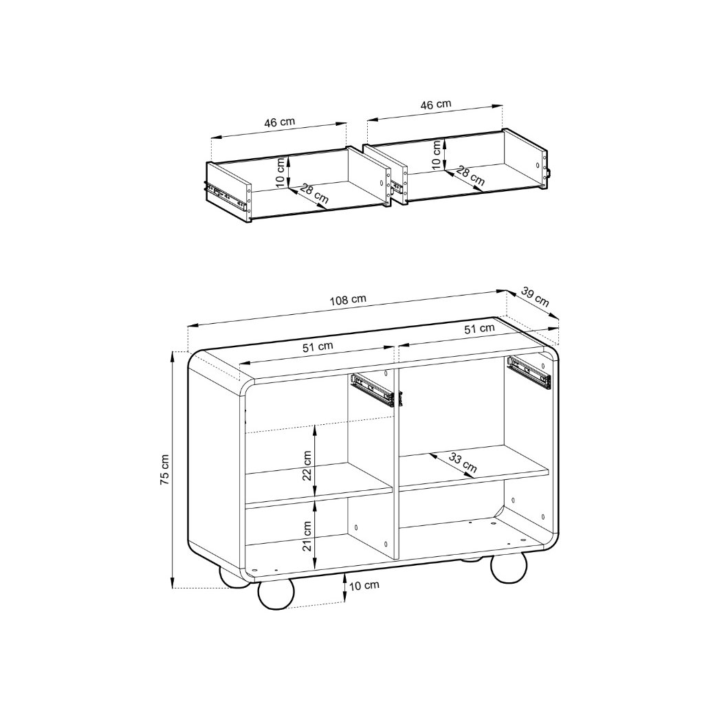 - KSZ108 fiókos komód , szélesség x magasság x mélység: 108 x 75 x 39 cm