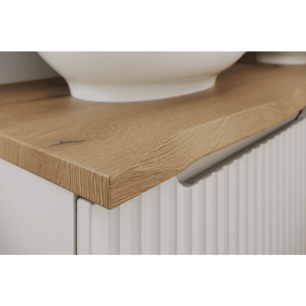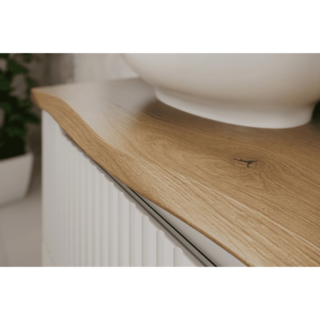 A munkalap nem tartalmaz lyukakat, de vágás útján testreszabható. Ez a kiváló minőségű , 2,2 cm vastag munkalap MDF anyagból készült, kifejezetten mosdószekrényre való felszereléshez. Alkalmas mosdókagylókhoz, 2,2 cm vastagsága nagy ellenállást és hosszú élettartamot biztosít. A munkalap karbantartásához pamutkendő használatát javasoljuk.
