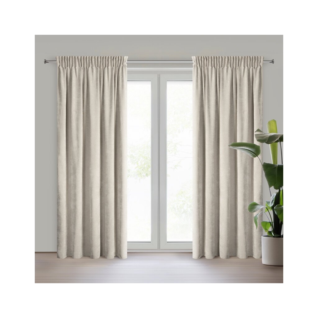 Kész függöny zsenília szerkezettel. szélesség: 140 cm, hosszúság: 270 cm, szín: bézs, súly: 160 GSM, anyag: 100% poliészter