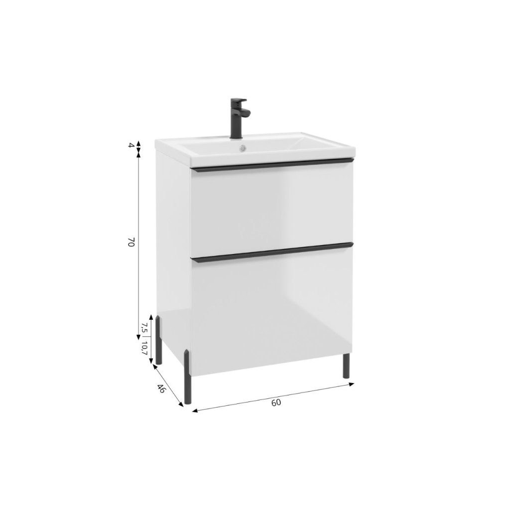 A luxus NINO fürdőszobaszekrény fehér fényes kivitelben, 60 cm szélességgel és 45 cm mélységgel nagyszerű választás azoknak az enteriőröknek, amelyek a... Letisztult és elegáns megjelenés optikai térnövekedéssel. A fényes felület hatékonyan visszaveri a fényt, így a fürdőszoba tágasabbnak és világosabbnak tűnik, amit különösen a kisebb terekben fog értékelni. A szekrények biztosítják a... A rengeteg tárolóhely és a fekete fém elemek modern, kontrasztos hangsúlyt adnak a szettnek . A fürdőszobaszekrény két lágyan záródó fiókkal rendelkezik. A lábak és a fogantyúk fekete színűek. A NINO WHITE mosdószekrény két tágas fiókkal rendelkezik, a szekrény összeszerelt állapotban van.