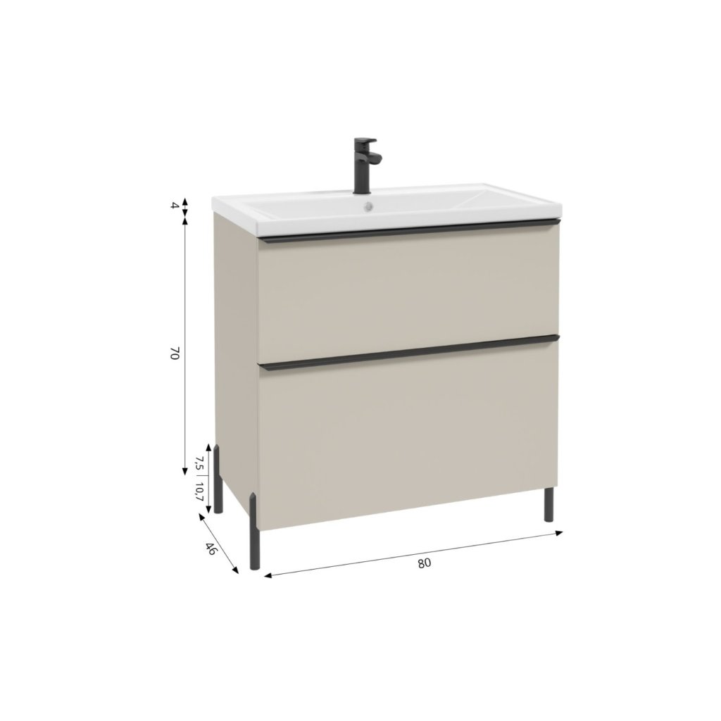 A kiváló minőségű NINO fürdőszobaszekrény 80 cm széles és 45 cm mély kasmír anyagból készült, nagyszerű választás olyan enteriőrökbe, amelyek a... Letisztult és elegáns megjelenés, optikai térnövekedéssel. A szekrények biztosítják A rengeteg tárolóhely és a fekete fém elemek modern, kontrasztos megjelenést kölcsönöznek a garnitúrának . A fürdőszobaszekrény két, lágyan záródó fiókkal rendelkezik. A lábak és a fogantyúk fekete színűek, a szekrényt összeszerelve szállítjuk.