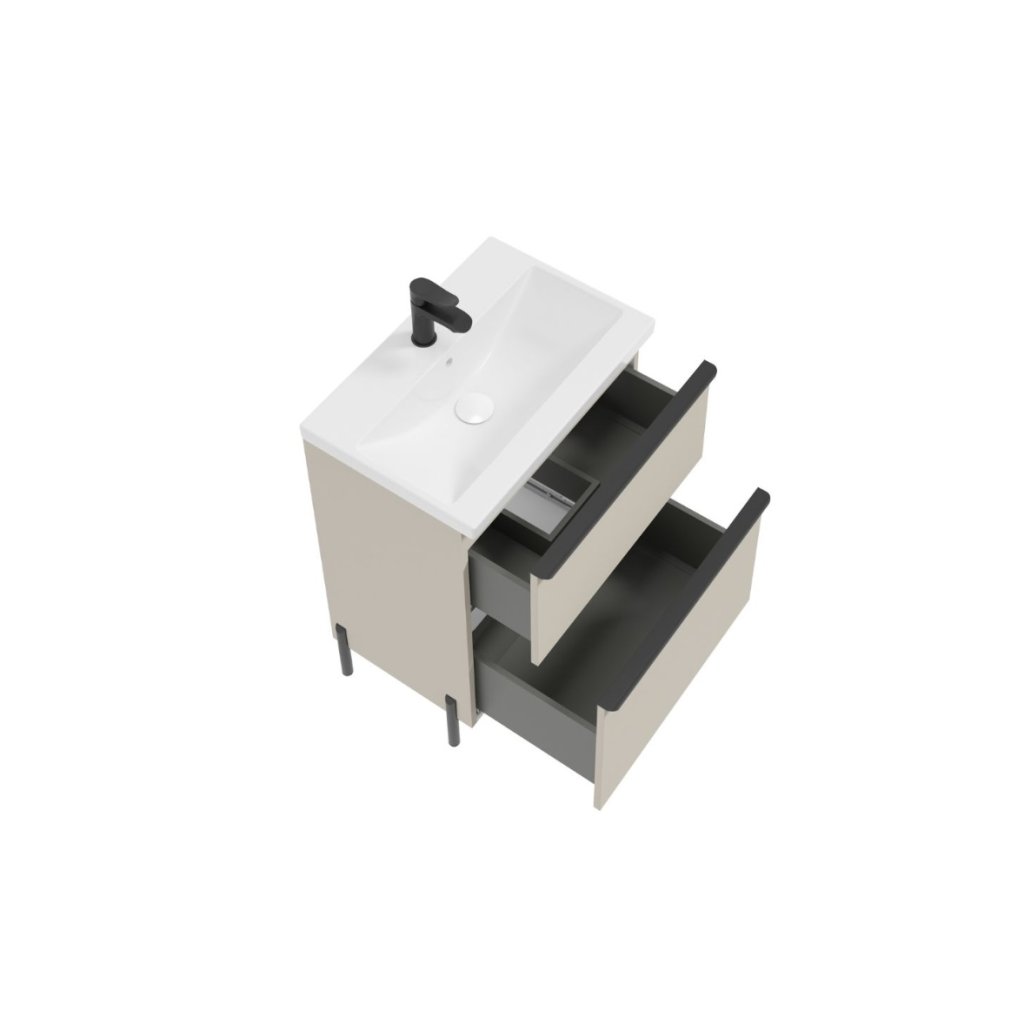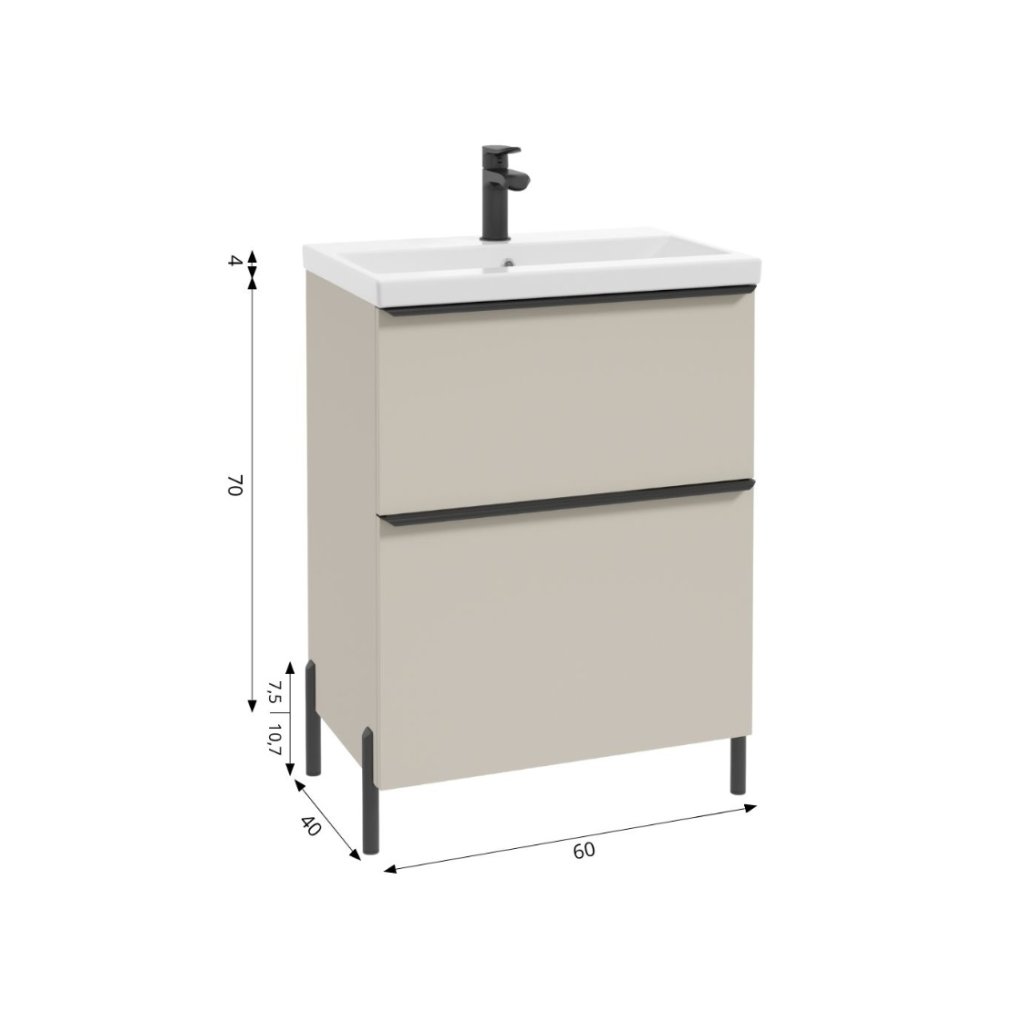 Az elegáns , 60 cm széles NINO fürdőszobaszekrény kasmír anyagból készült, nagyszerű választás olyan enteriőrökbe, amelyek a... Letisztult és elegáns megjelenés, optikai térnövekedéssel. A szekrények biztosítják A rengeteg tárolóhely és a fekete fém elemek modern, kontrasztos hangsúlyt adnak a szettnek . A fürdőszobaszekrény két lágyan záródó fiókkal rendelkezik. A lábak és a fogantyúk fekete színűek. A matt felületű NINO mosdószekrény két tágas fiókkal rendelkezik.