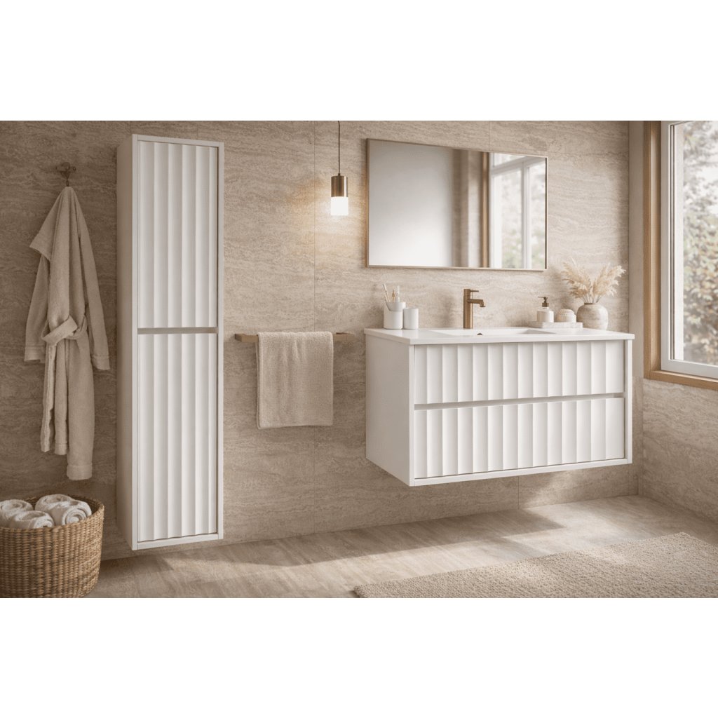 A 60 cm széles NOA White fürdőszobaszekrény a modern dizájn és a prémium designer bútoroktól elvárható funkcionalitás megtestesítője. Letisztult szettak, finom függőleges marások és a tökéletesen illeszkedő , időtlen megjelenésű kerámia mosdó harmonikus egészet alkot, amely természetesen illeszkedik a modern fürdőszobákba. A kiváló minőségű Formmo SlimFrame, Formmo Ergo és Formmo Silent fiókrendszerek vékony acélfalakkal rendelkeznek a maximálisan kihasználható tárolóhely érdekében, valamint lágy és csendes záródással a kényelem érdekében minden használatnál.