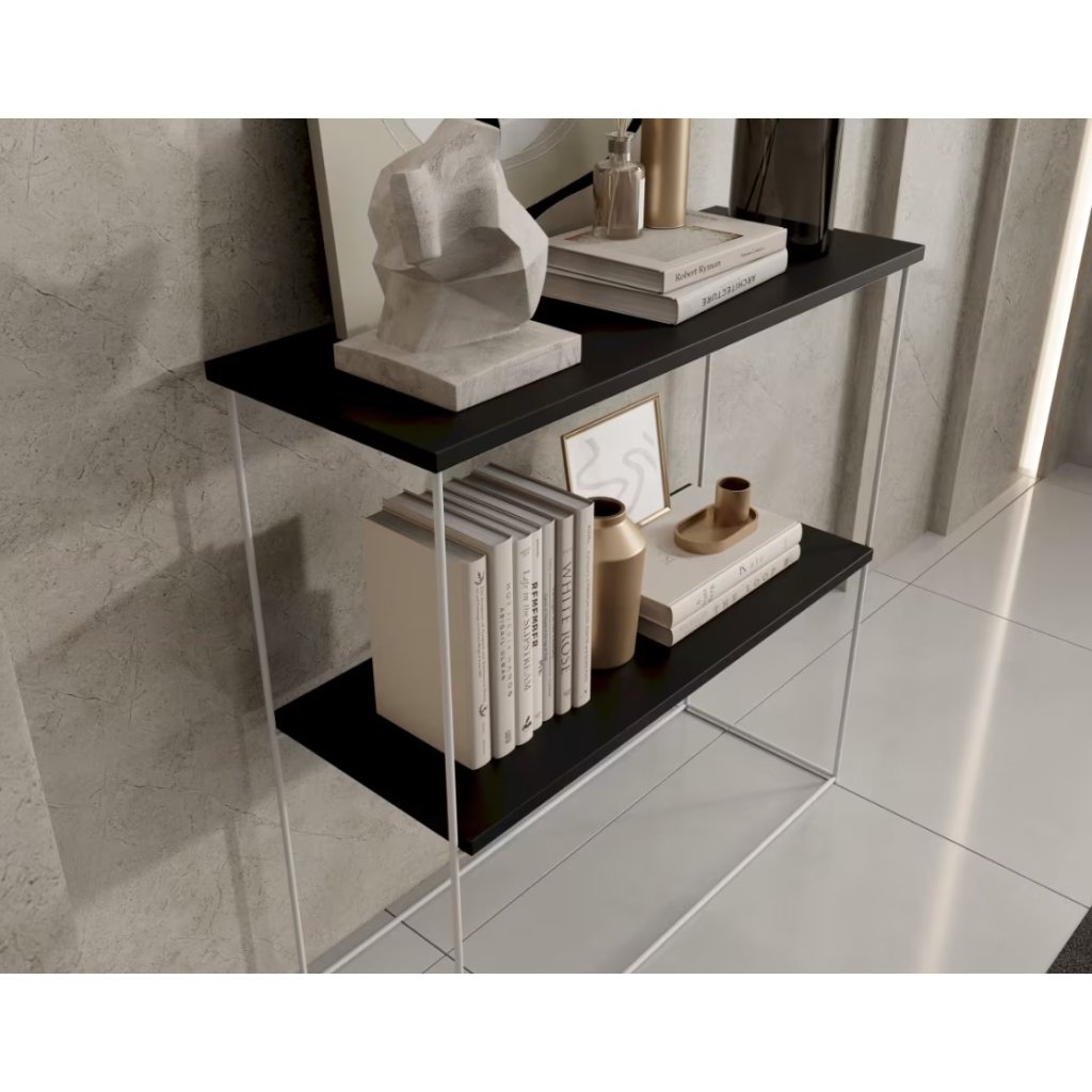 Oldalasztal TONI | A fehér lábak stílusos és kortárs bútorelemet képviselnek, amely tökéletesen illeszkedik a különböző belső terekbe – a tiszta minimalistától a dinamikus környezetig. Domináns jellemzője a drótanyagból készült lábak , amelyek légiességet és modern dizájnt kölcsönöznek a konzolnak. Az egyszerűen formázott felső harmonizál az alap részletes fémszerkezetével, kiegyensúlyozott és esztétikus egységet alkotva. Az oldalsó asztalnál a tárolólap több színváltozata is választható.