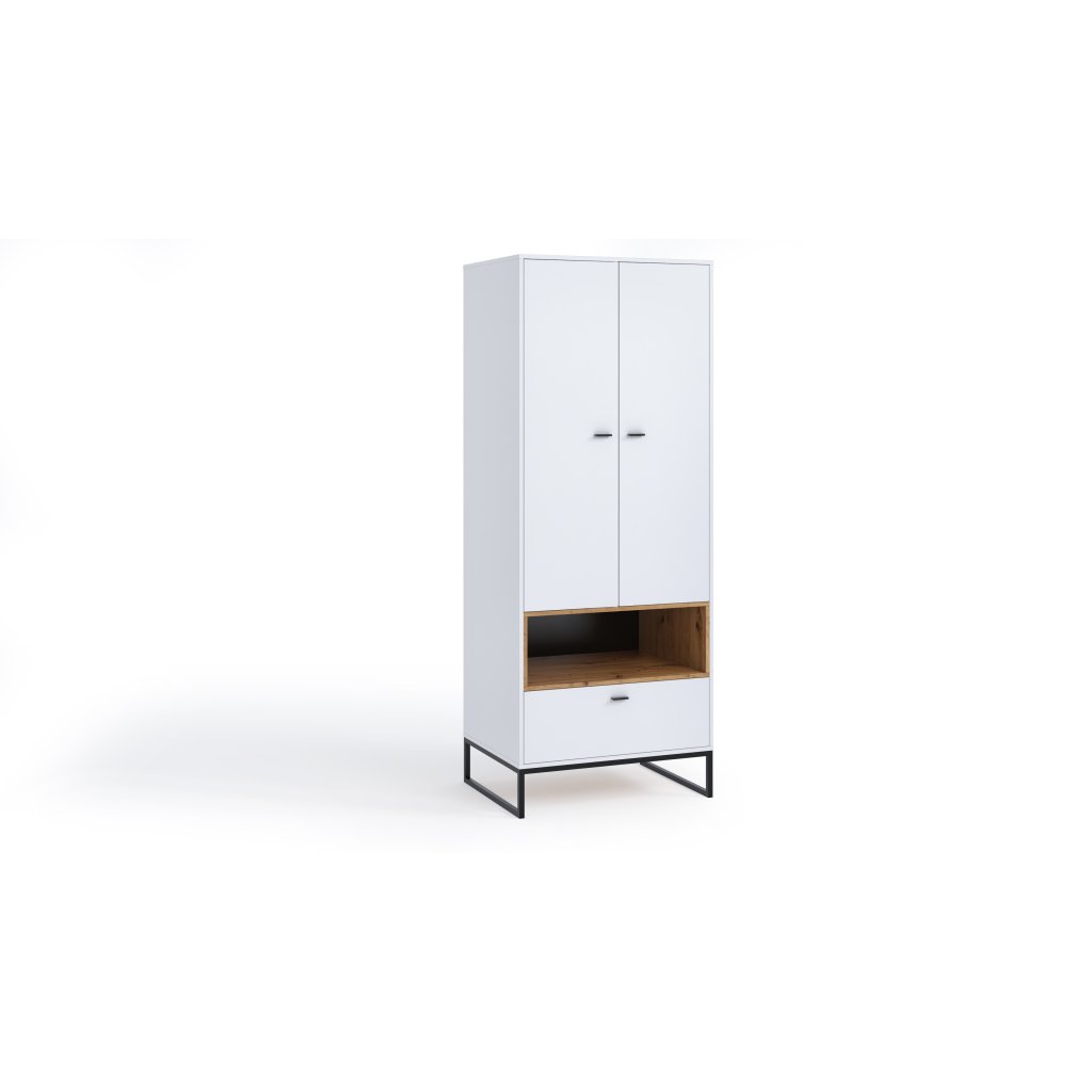 A modern OLIER bútorkollekció rendkívüli dizájnt és kivételes színvilágot mutat be. A fehér és a kézműves tölgy színkombinációja nagyon elegánsnak tűnik. A bútorokat időtlen megjelenés és praktikus kialakítás jellemzi . Az OLIER kollekciónak köszönhetően olyan nappalit, előszobát vagy helyiséget alakíthat ki, ahol minden szabadidejét el szeretné tölteni, így a kollekció nem hiányozhat egyetlen modern otthonból sem. Olier SZ2D szekrény két fiókos polccal és akasztórúddal. Könnyedén berendezheti a nappalit, a folyosót és a gyerekszobát.