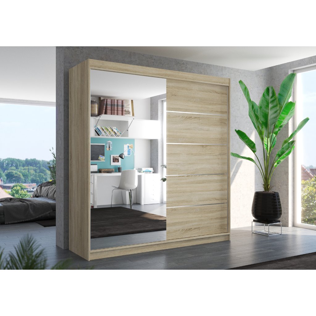 A praktikus gardrób a legkelendőbb sonoma tölgy színben készült. A tágas Oliver gardrób ajtói síneken futnak, ami megkönnyíti a mindennapi használatot. A gardrób kétajtós - tolós, az ajtaján tükörrel. Meríts ihletet a kínálatból, és válassz ruháidnak megfelelő gardróbot.