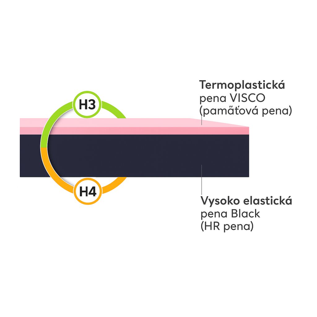 - kétoldalas szerkezet – az egyik oldal H3 merevségű (közepesen kemény), a másik H4 merevségű (kemény), amely lehetővé teszi a matrac egyéni preferenciákhoz való igazítását,