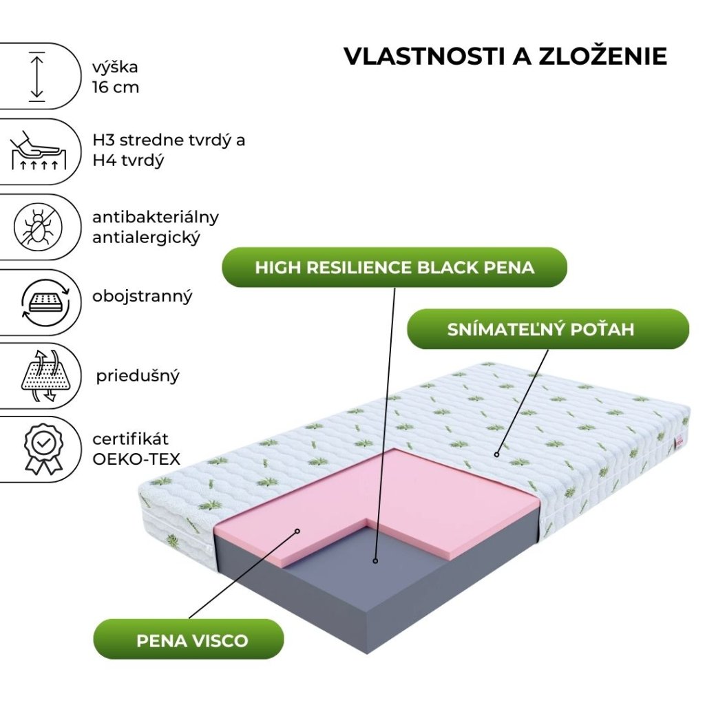 Javítsa alvása minőségét az ORSA Aloevera habszivacs matraccal, amely maximális kényelmet és támasztást biztosít alvás közben. Ez a matractípus igazodik a test szettaihoz , optimális támaszt nyújtva a gerincének. Ideális mindazok számára, akik hát- vagy ízületi fájdalmakkal küzdenek, mivel lehetővé teszi a test ellazulását és pihenését természetes testhelyzetben. A matrac magassága 16 cm . A matrac kétoldalas - az egyik oldalon H3 keménységű, ami közepesen kemény matracot jelent, a másik oldalon H4 keménységű, ami kemény matracot jelent. A matrac nagyon rugalmas és ellenáll a deformációnak. Ne várjon, fedezze fel matracunk előnyeit! A matrac OEKO-TEX® tanúsítvánnyal rendelkezik.