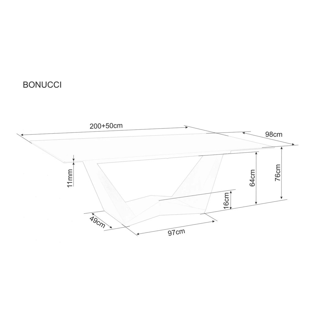 A BONUCCI étkezőasztal egyedi színvilággal készült, így minden otthonba biztosan alkalmas. Az asztal kiváló minőségű anyagból készült, amely hosszú élettartamot és ellenállást biztosít. Az asztal 250 cm-es szélességig is bővíthető , amit biztosan értékelni fog, ha családjával vagy barátaival ül. Az asztal nemcsak egyediséget, hanem eleganciát és tökéletességet is visz otthonába.
