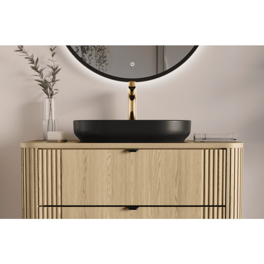 Fedezze fel az időtlen design szépségét a modern OVALIA fürdőszoba szettel, amely ötvözi a fa természetes megjelenését , a minimalista szettakat és a stílusos elemeket. A világos fa dekoráció a szekrények finom függőleges marásával kombinálva elegáns és otthonos egyszerre. Dobja fel mosdószekrényét egy modern, lekerekített formájú munkalappal - ideális azok számára, akik eredeti és funkcionális dizájnt keresnek.