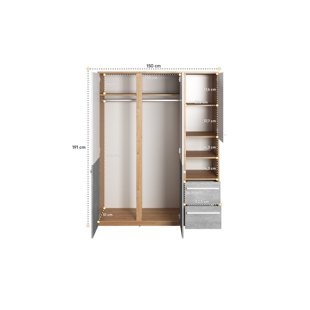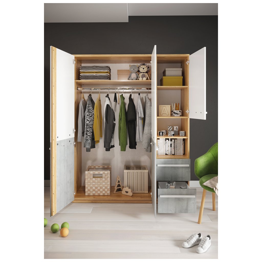 A PN-01 gardróbszekrény a modern PALMER kollekció része, amellyel tökéletes diákszobát alakíthatsz ki. A bútort rendkívüli színvilág és eredeti fogantyúk jellemzik. A bútor nemcsak a minőségi anyagokból készült, hanem praktikus kialakítású is. A kollekció számos lenyűgöző szegmenst tartalmaz, amelyek lehetővé teszik a tökéletes tanuló- és szabadidős helyiség kialakítását, így ez a bútor nem hiányozhat egyetlen modern háztartásból sem. A gardróbszekrény két akasztóval, 5 kg maximális teherbírású fix polcokkal és két fiókkal rendelkezik. A bútort szétszerelt állapotban szállítjuk.