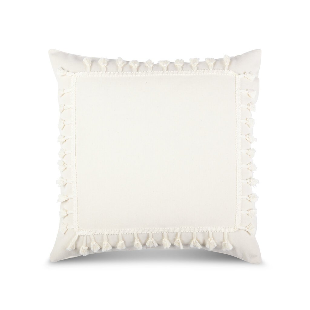 Boho stílusú dekorpárnahuzat pomponokkal díszítve szélesség: 45 cm, hossz: 45 cm, szín: krém, súly: 230 GSM, összetétel: Anyaga: 30% pamut, 70% poliészter