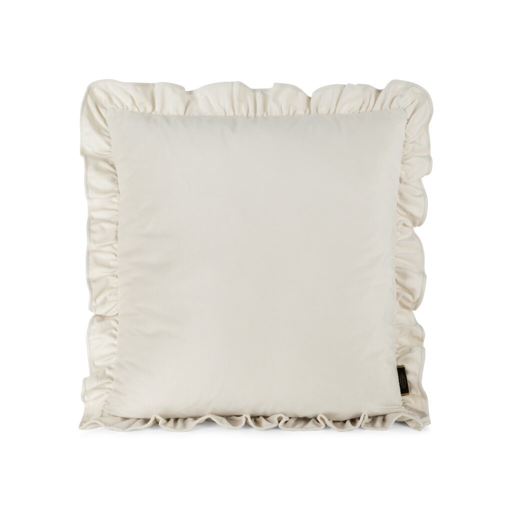 Bársony párnahuzat fodrokkal szélesség: 45 cm, hossz: 45 cm, szín: krém, súly: 210 GSM, összetétel: Anyaga: 100% poliészter