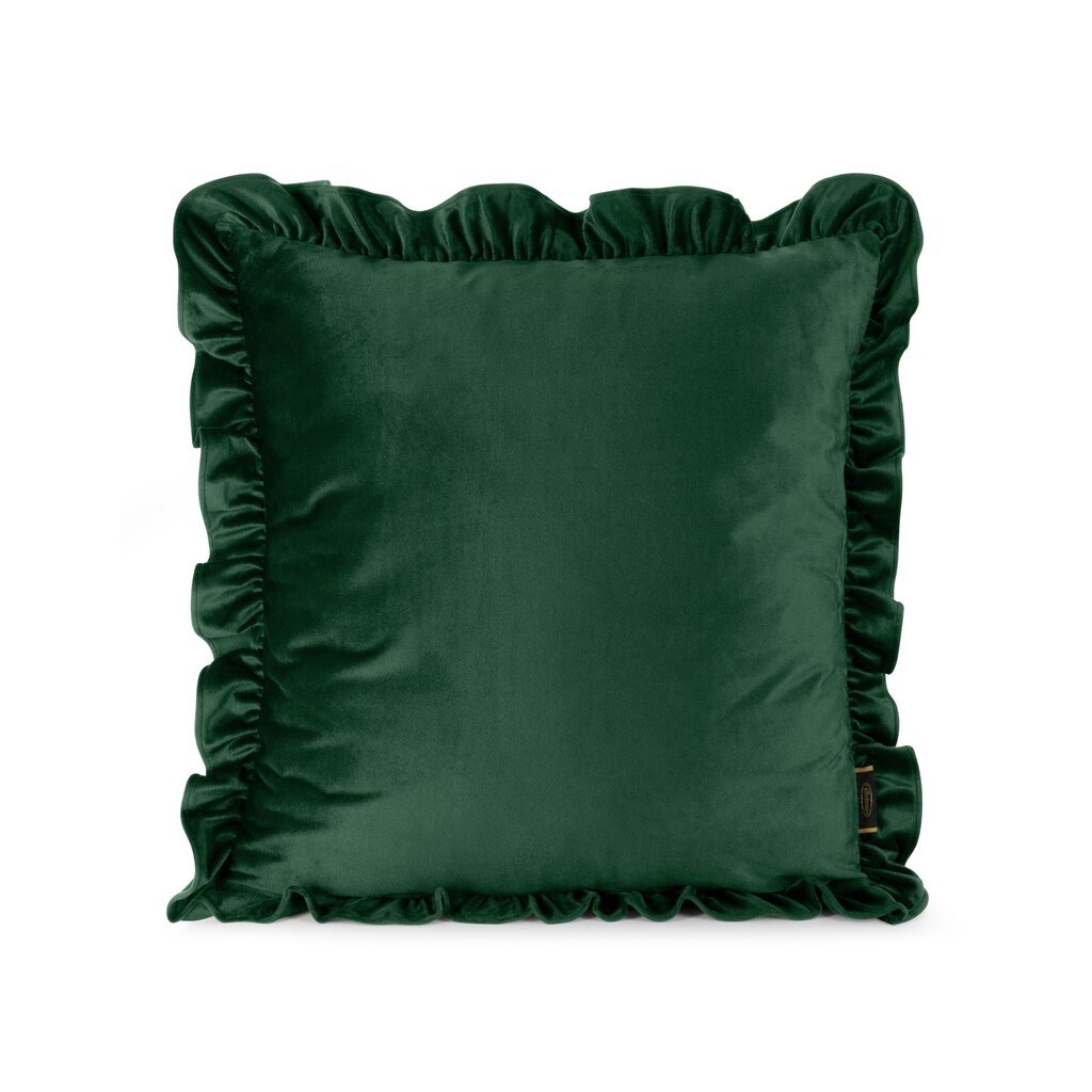 Bársony párnahuzat fodrokkal szélesség: 45 cm, hossza: 45 cm, szín: sötétzöld, súly: 210 GSM, összetétel: Anyaga: 100% poliészter