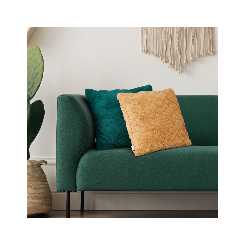 Klasszikus párnahuzat mikroflanel rostból, kellemes tapintású. Az egyszínű bolyhos szerkezetet halszálka alakú minimalista dombormű díszíti. szélesség: 45 cm, hosszúság: 45 cm, szín: sötétzöld, súly: 340 GSM, összetétel: Anyaga: 100% poliészter.