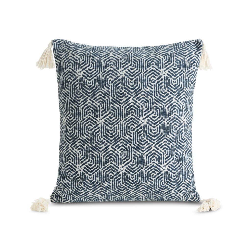 Dekoratív párnahuzat bojtokkal, szélessége: 45 cm, hossza: 45 cm, színe: sötétkék, súlya: 420 GSM, összetétel: Anyag: 100% poliészter