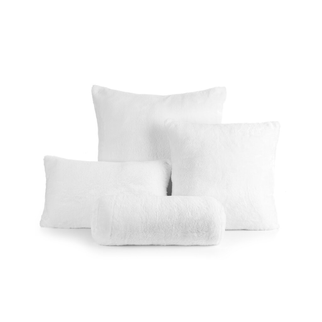 Dekoratív szőrme párnahuzat. Szélesség: 45 cm, Hosszúság: 45 cm, Szín: Fehér, Összetétel: Anyag: 100% poliészter