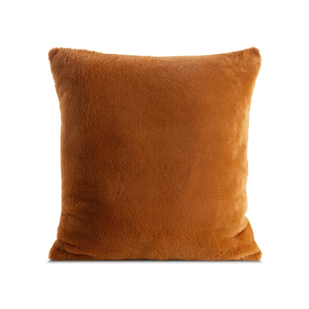 Dekoratív szőrme párnahuzat. Szélesség: 45 cm, Hosszúság: 45 cm, Szín: Téglavörös, Összetétel: Anyag: 100% poliészter