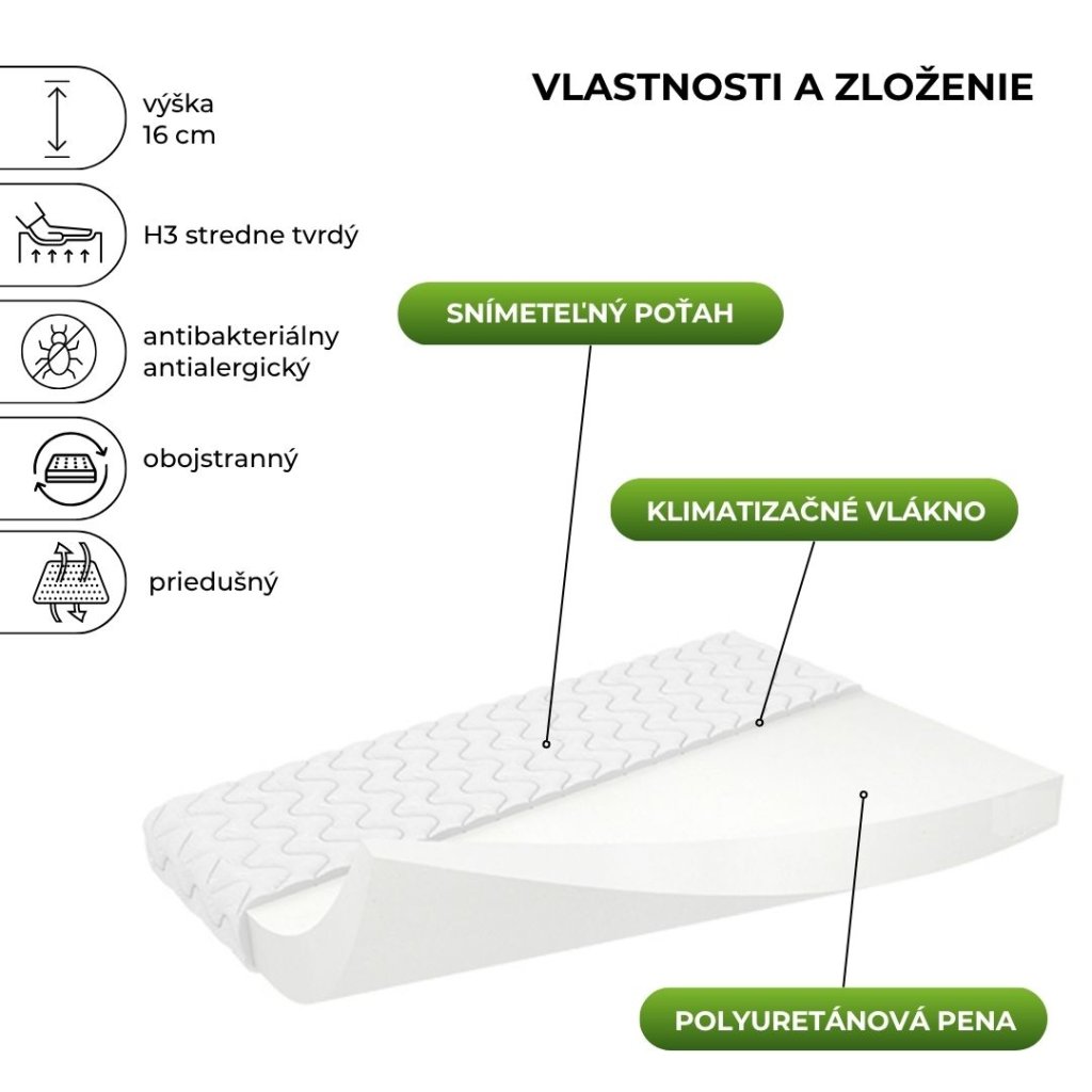 A kiváló minőségű anyagok, mint például a megnövelt sűrűségű T25 hab , használata biztosítja, hogy a matrac hosszú ideig megőrzi formáját és funkcionális tulajdonságait. Ez a matrac nemcsak tartós, hanem rendkívül kényelmes is. Antibakteriális és antiallergén tulajdonságainak köszönhetően megakadályozza a poratkák és baktériumok képződését, hozzájárulva az egészséges alvási környezethez. A matrachuzat 100% poliészterből készült, könnyen levehető és 40°C-on mosható, ami maximális higiéniát biztosít. A huzat felszívja és elvezeti a nedvességet, így kiváló légáteresztő képességet biztosít.