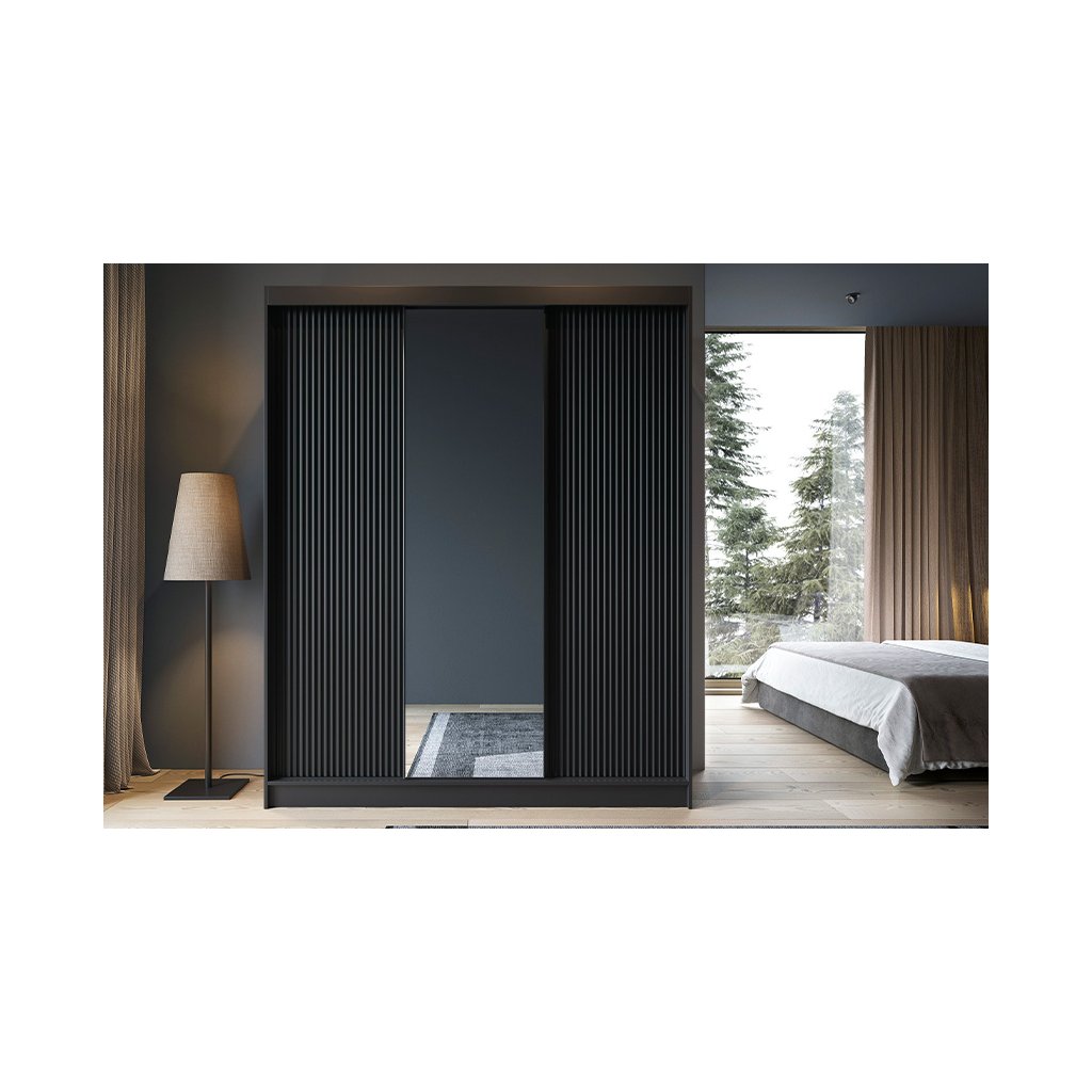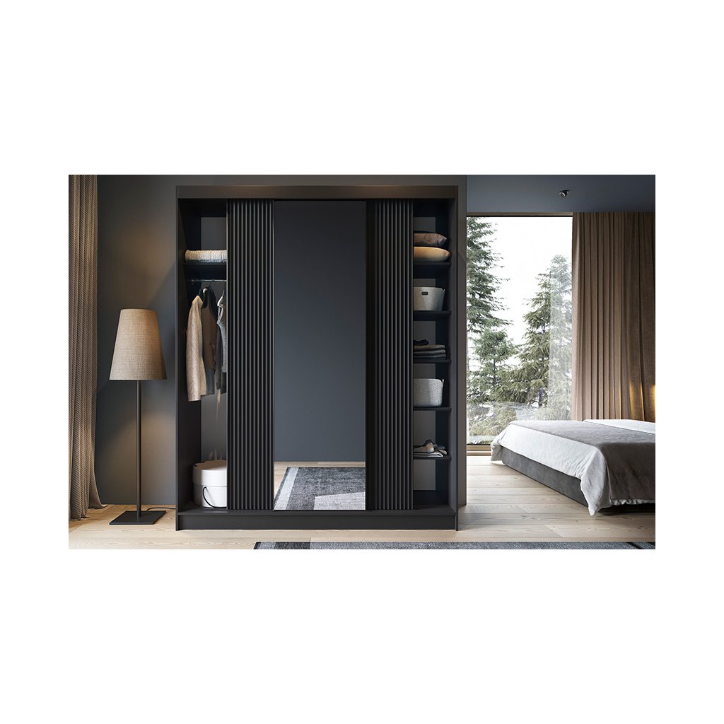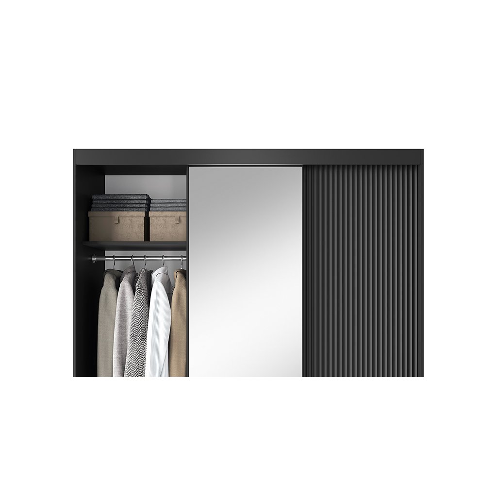 A modern PRESCCO 180 tükrös ruhásszekrény kiváló minőségű, 16 mm vastag MDF lapból készült, az ABS élek pedig biztosan tetszeni fognak. A ruhásszekrény masszív és kiváló minőségű, az anyag nem igényel különösebb ápolást, csak egy nedves ruhával törölje le a port.
