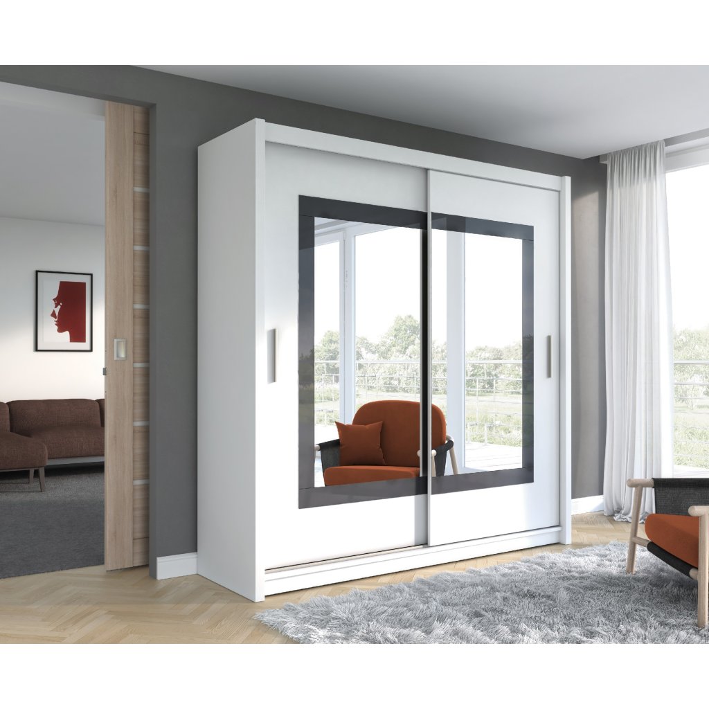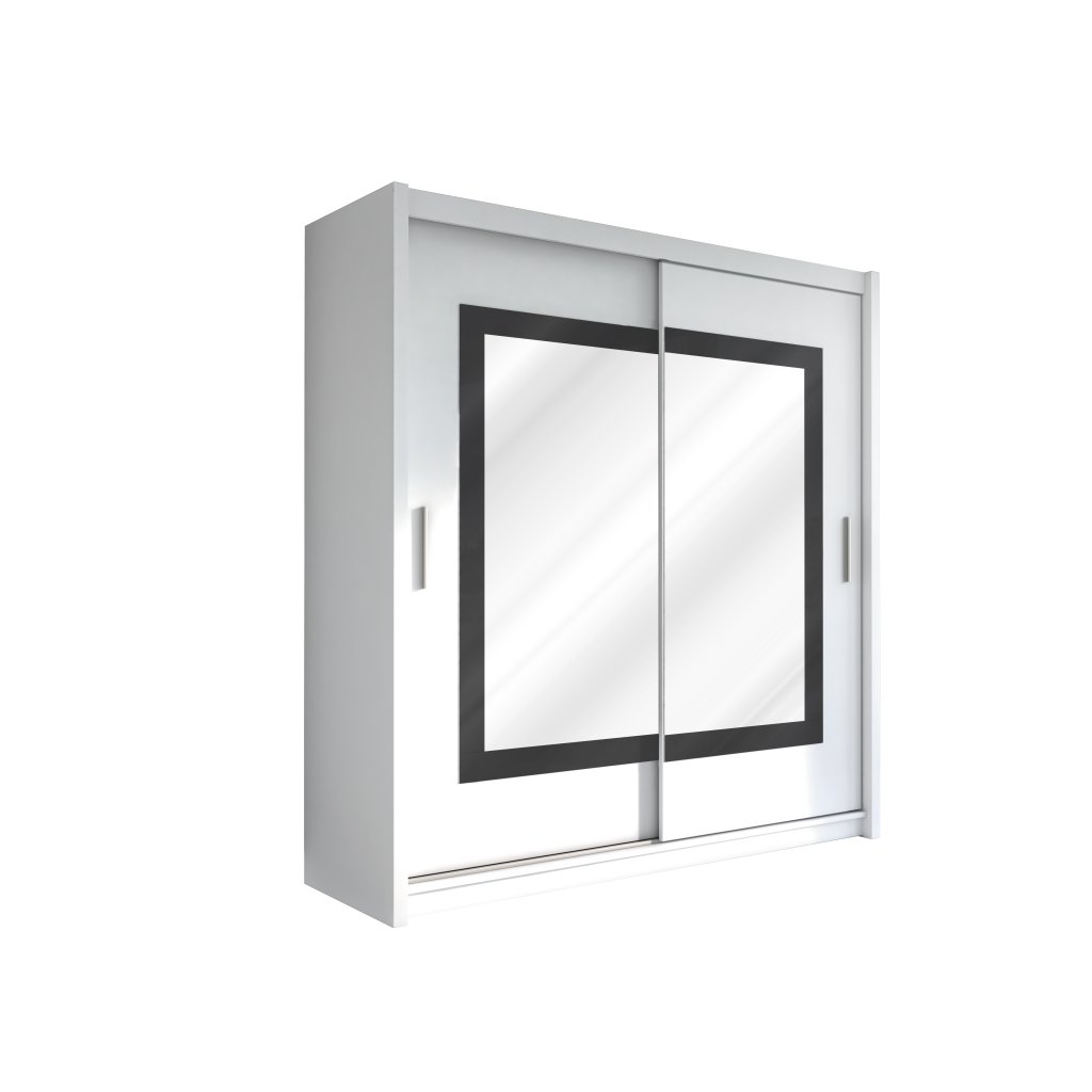 A gyönyörű és időtlen PRESTON 203 ruhásszekrény a legkelendőbb fehér színben készült, fekete üveg kombinációjával. A PRESTON ruhásszekrény egy kétajtós szekrény, mindkét ajtaján tükörrel. A PRESTON ruhásszekrény tágas, polcokkal és ruhaakasztó rúddal rendelkezik.
