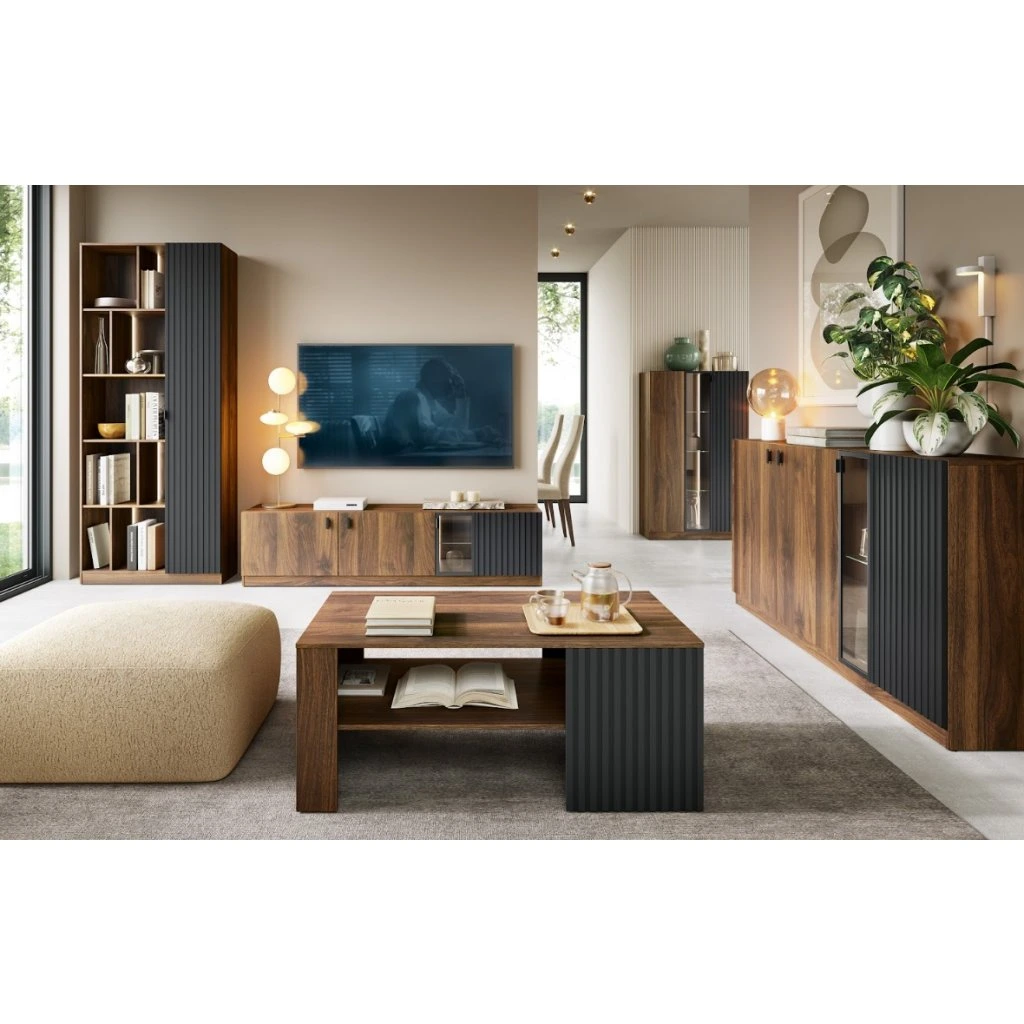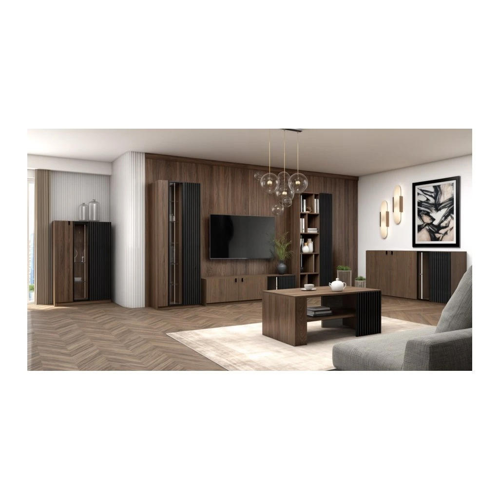 A RADIUM 16 vitrin a modern dizájn, a funkcionalitás és a kényelem ideális kombinációját képviseli a mindennapi használatra. A Columbia diófa dekor és a matt fekete elegáns kombinációja időtlen megjelenést kölcsönöz, amely modern és minimalista enteriőrökbe egyaránt illik. A vitrin bőséges tárolóhelyet kínál elektronikai cikkek, könyvek, dekorációk és mindennapi tárgyak számára. Az integrált LED-világítás kellemes hangulatot teremt. A használati kényelmet növeli a lágyan záródó rendszer, amely biztosítja az ajtók csendes és sima záródását .