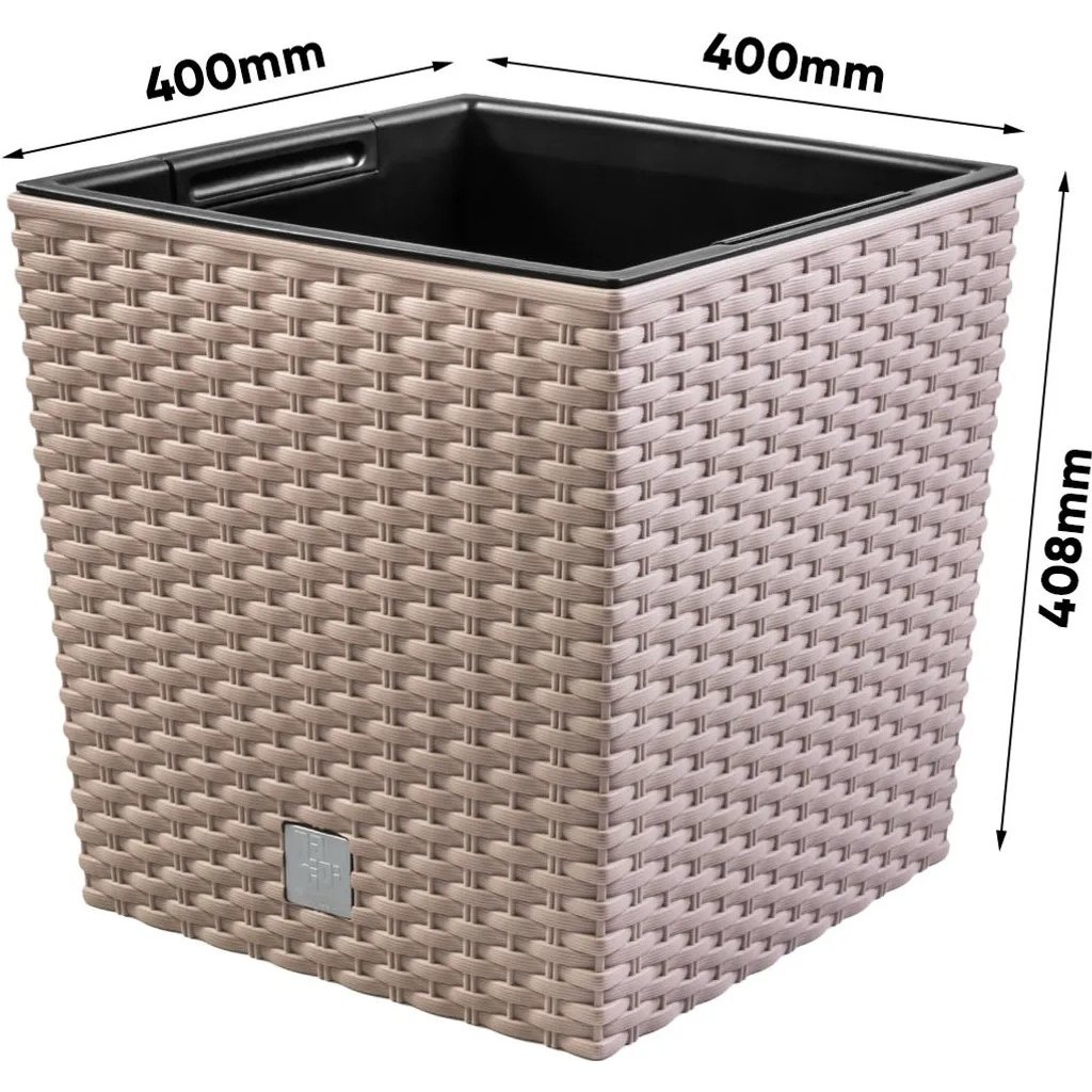 Kerti ültetőgép RATO LOW betéttel kiváló minőségű és strapabíró, rattan zsinórt imitáló műanyagból készült. A kerti ültetőgép egyik előnye a könnyű karbantartás és a hosszú élettartam . A fényűző ültetőgép könnyű és ellenáll a sérüléseknek, a karcolásoknak és az időjárási hatásoknak, különösen az UV sugárzásnak és a fagynak. Az ültetőben van egy betét, amely megkönnyíti a növények termesztését.